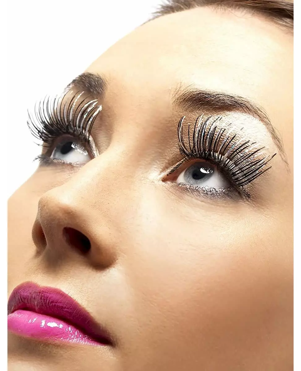 Lysende utseende! For et enda mer intenst utseende, falske øyevipper, sølv/svart farge, selvklebende for voksne. Inkludert tilbehør: falske øyevipper