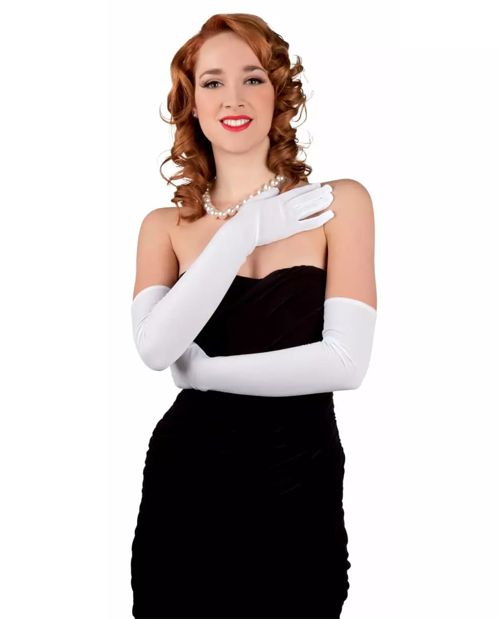 60 cm hansker! Disse lange hvite hanskene for voksne måler 60 cm i lengden. De er laget av fint hvitt stoff. Disse hanskene vil være det perfekte supplementet til Charleston- eller divakostymet ditt til karneval eller under kostymefester. Inkludert tilbehør: Par hansker Materiale: 100 % polyester