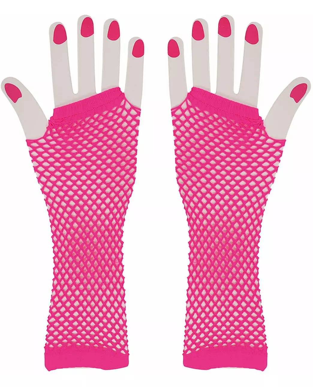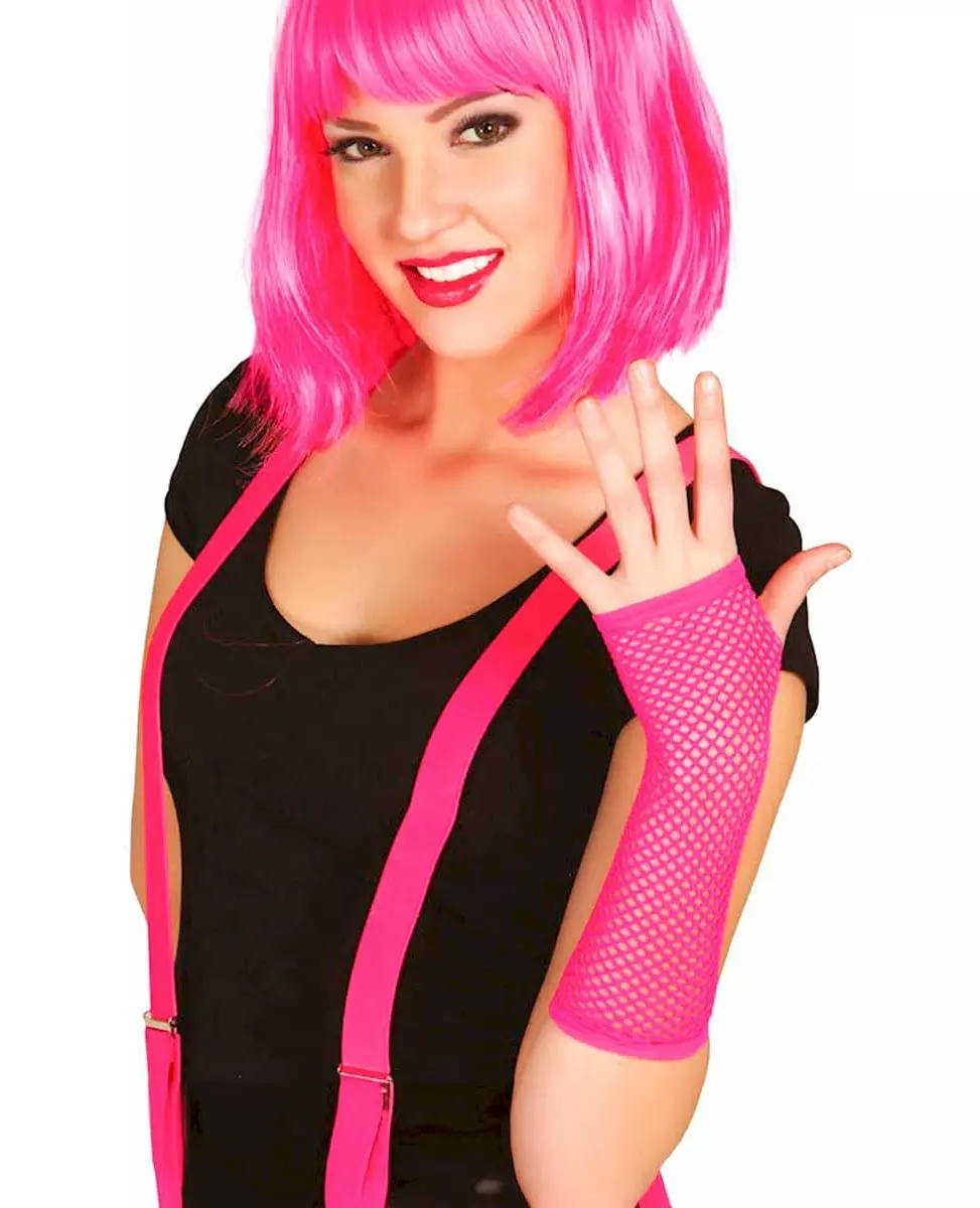 Dekk hele underarmen! Dette paret med rosa fiskenettvotter for kvinner dekker hele forsiden av armen. De er sterke, komfortable og holdes på plass med strikk i hver ende. Dette prangende tilbehøret er essensielt for å fullføre kostymene dine helt ned til fingertuppene! Copyright Widmann SRL. Inkludert tilbehør: 1 par votter Materiale: Polyester Vedlikehold: Håndvask