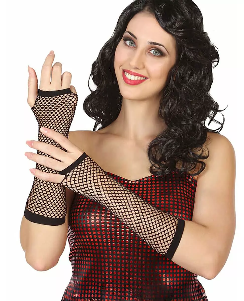 Dekk hele underarmen! Svarte fiskenettvotter for kvinner som dekker hele forsiden av armen. De er sterke, komfortable og holdes fast av strikk i hver ende for bedre passform. Viktig tilbehør for å fullføre kostymene dine helt ned til fingertuppene! © Copyright Widmann SRL. Materiale: 100 % polyester Vedlikehold: Håndvaskbar