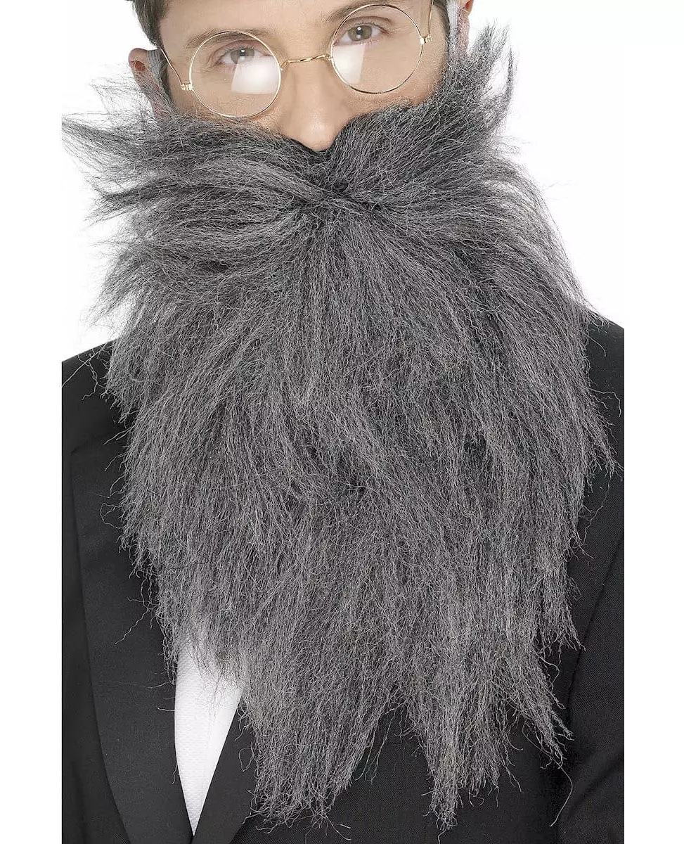 Grått! Dette lange grå skjegget for menn vil være perfekt for å fullføre alle slags forkledninger på kostymer eller temafester! Laget av syntetisk hår, festes det bak ørene med to strikker. Ikke nøl lenger, dette skjegget er som skapt for deg!
