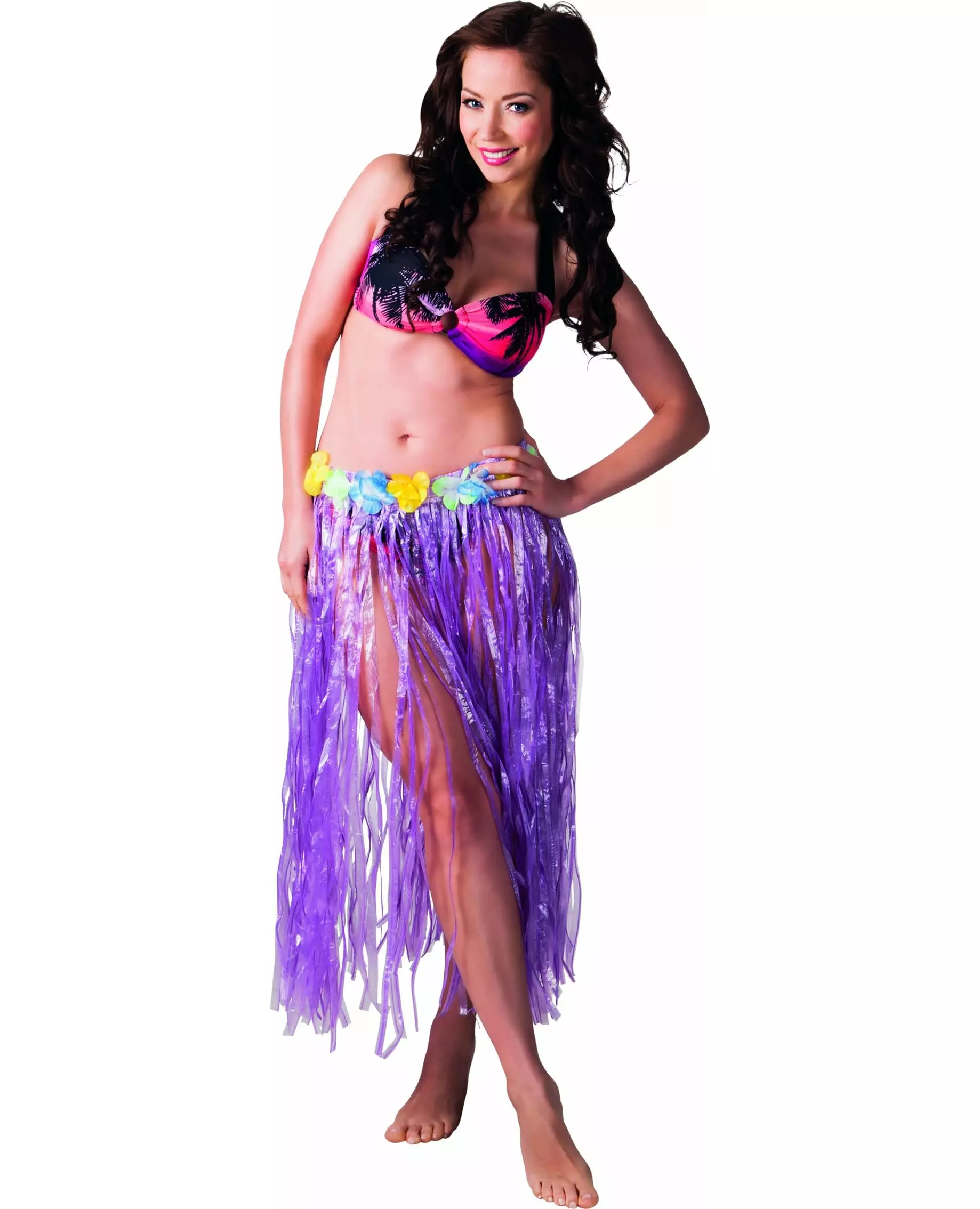 Fullfør ditt tahitiske antrekk med dette hawaiiske skjørtet. Dette hawaiiske skjørtet for kvinner er laget av lys lilla raffia. Den elastiske linningen, dekorert med stoffblomster, holdes på plass med borrelås. Trådene måler omtrent 80 cm i lengden. Det vil være et originalt tilbehør til kostymet ditt for en hawaiisk-tema kveld!. Inkludert tilbehør: Skjørt Materiale: Plast