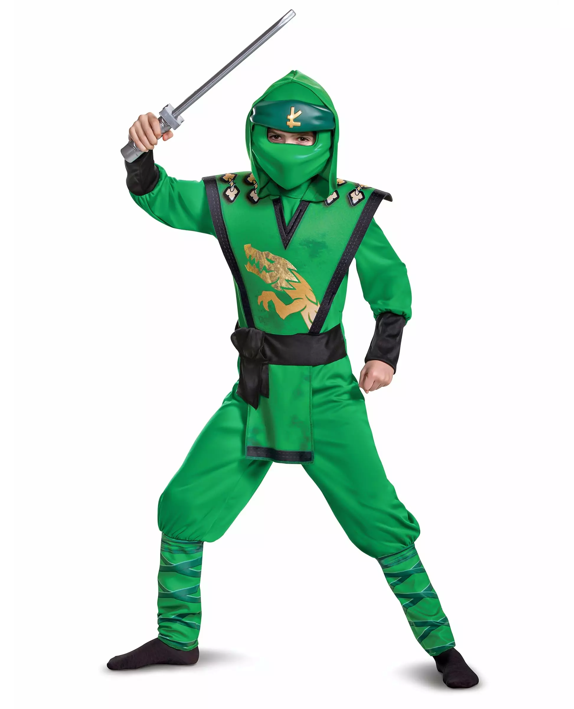 Legemliggjør den modige Lloyd med dette luksuriøse Legacy Ninjago™-kostymet for barn. Dette luksuriøse Lloyd-kostymet for barn er offisielt lisensiert av LEGACY Ninjago® LEGO®. Det inkluderer jumpsuit, maske og hette. Antrekket er helt grønt for å være tro mot Lloyds karakter, og et gyllent dragemotiv er på forsiden av tunikaen. Sistnevnte har svarte replikker på ermene og tunikaen. Alt som gjenstår er å ta på deg masken og hetten for å skjule ansiktet ditt som en ekte Ninjago. Du kan utstyre deg med to sabler for å legemliggjøre Lloyds karakter og fullføre ditt LEGACY deluxe Ninjago® - LEGO®-kostyme for barn. Inkludert tilbehør: Jumpsuit Hettemaske Materiale: 100 % polyester Vedlikehold: Håndvask