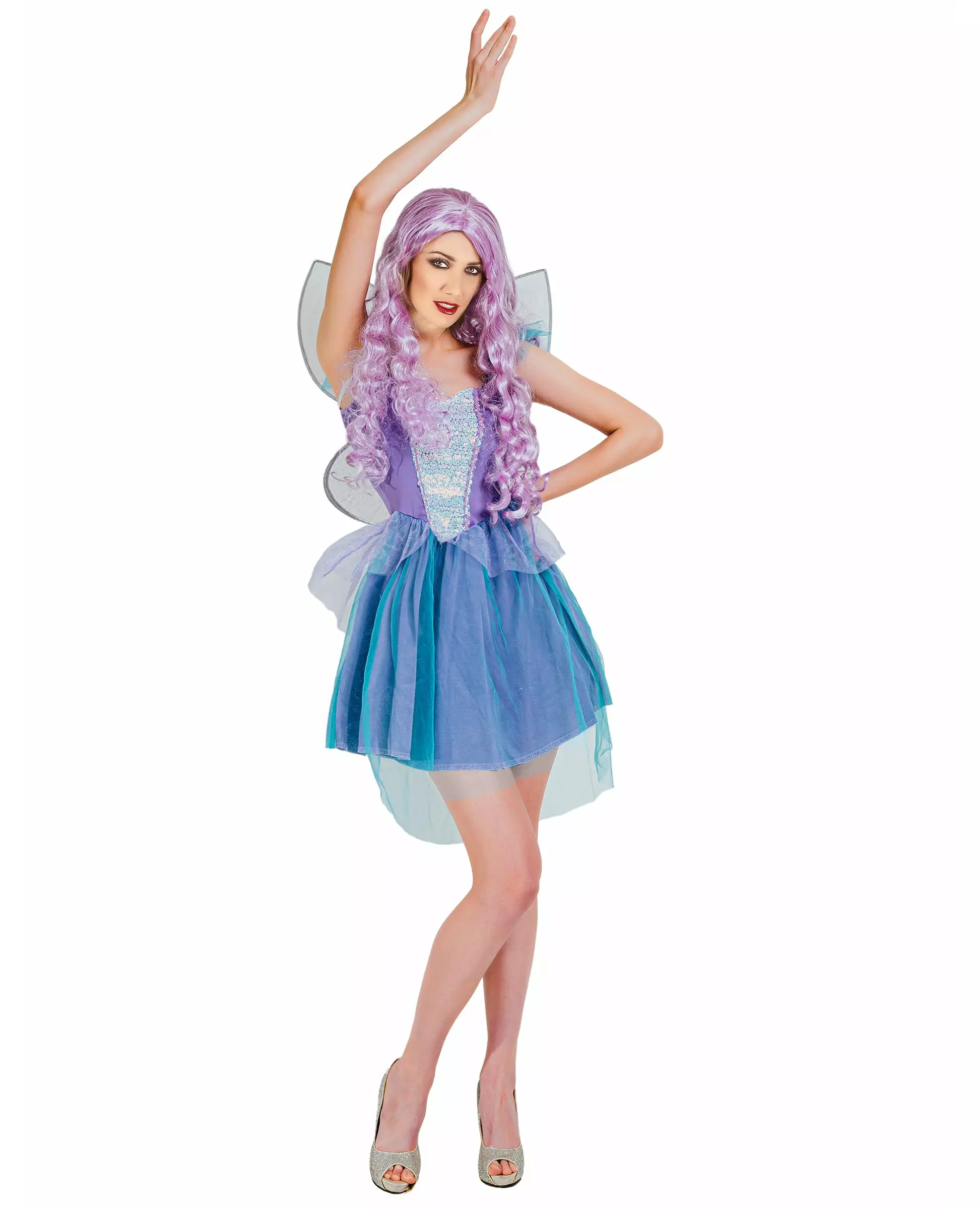 Et komplett sett for å bli drømmefeen din...! Dette lilla fe-kostymet er for kvinner. Det inkluderer en kjole med et par vinger. Kostymekjolen er kort og har ingen ermer. Den er lilla overalt med en klar, paljettbesatt del i midten. Den har et gjennomsiktig lilla slør som vil bli lagt over. Du vil også ha et par vinger som vil fullføre dette vakre settet. Bli en ekte fe til karneval eller nyttårsaften! Tilbehør inkludert - Kjole - Vinger