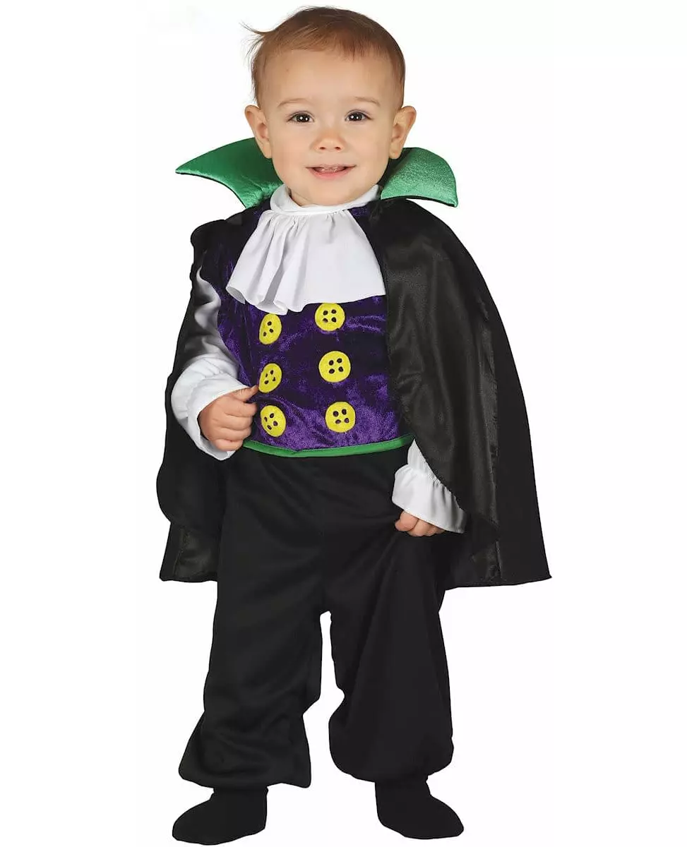 Tenk på et babykostyme til Halloween Dette vampyrkostymet til babyen består av en jumpsuit og en kappe. Jumpsuiten er lilla med gule knappetrykk på bysten. De lange ermene er hvite og matcher jabot-kjolen. En vampyrkappe fullfører anseelsen. Dette vampyrkostymet til babyen vil være perfekt til Halloween-kostymefesten din. Inkludert tilbehør: Jumpsuit med jabot-kappe Materiale: 100 % polyester Vedlikehold: Håndvask