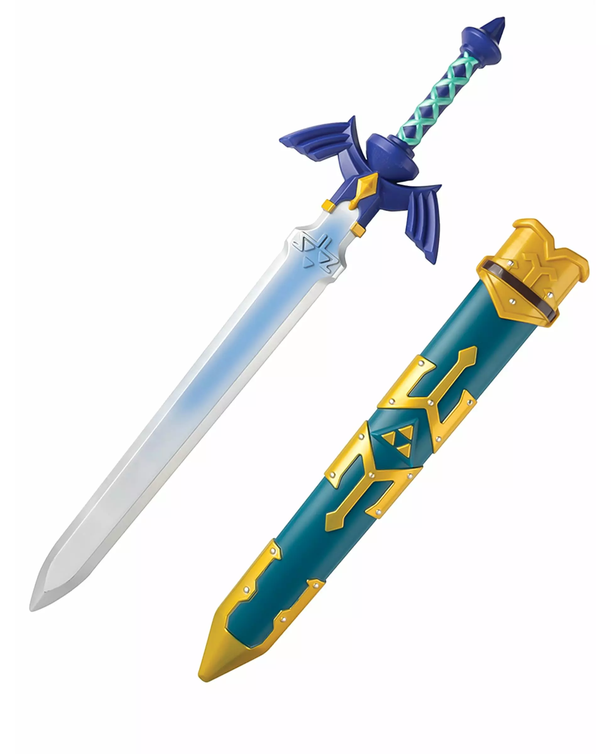 Zelda-fan, dette Link-sverdet er som skapt for deg! Dette Link-sverdet er offisielt lisensiert av Legend of Zelda. Laget av plast, måler det omtrent 66 x 15 x 5 cm. Bladet er grått og blått, i en fin gradient. Sliren er blå og gull. Dette sverdet vil være perfekt for å fullføre Link-kostymet ditt under karnevalet. Inkludert tilbehør: Sverdmateriale: Plast