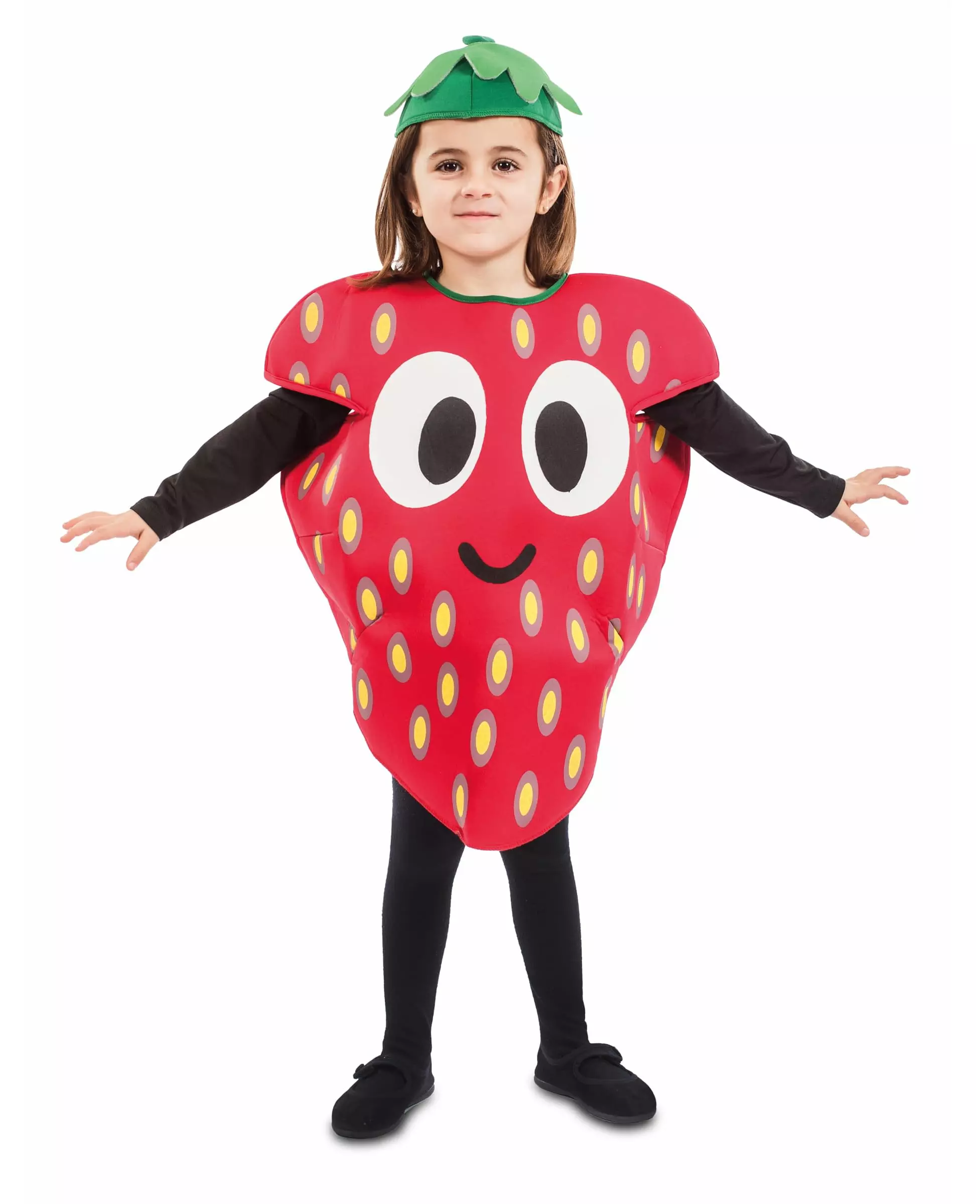 Lær å elske frukt med dette jordbærkostymet. Dette søte lille jordbærkostymet for barn består av en tunika og en hatt (svart topp og bukser er ikke inkludert). Tunikaen er formet som et jordbær. Store øyne og et lite smil er trykt på forsiden. Denne tunikaen har åpninger for øyne, armer og ben. Hatten er grønn med lysere blader på toppen. Dette kostymet vil være perfekt for å få barna dine til å elske frukt på karnevalsdagen. Inkludert tilbehør: Tunikahatt Materiale: 100 % polyester Vedlikehold: Håndvask