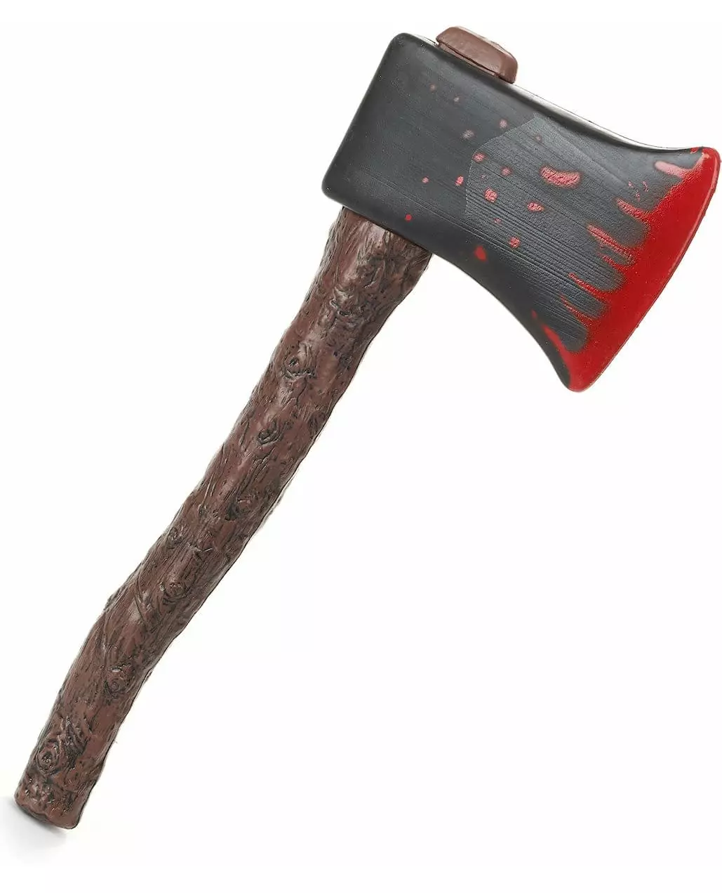 Det er best å ikke bli for opprørt med dette våpenet i hånden. Denne plastøksen måler omtrent 38 cm. Håndtaket er laget av imitert tre, og det er falskt blod på enden av øksen. Dette tilbehøret vil være perfekt for å fullføre et blodig tømmerhoggerkostyme for å feire Halloween. Inkludert tilbehør: Øks. Materiale: Plast.