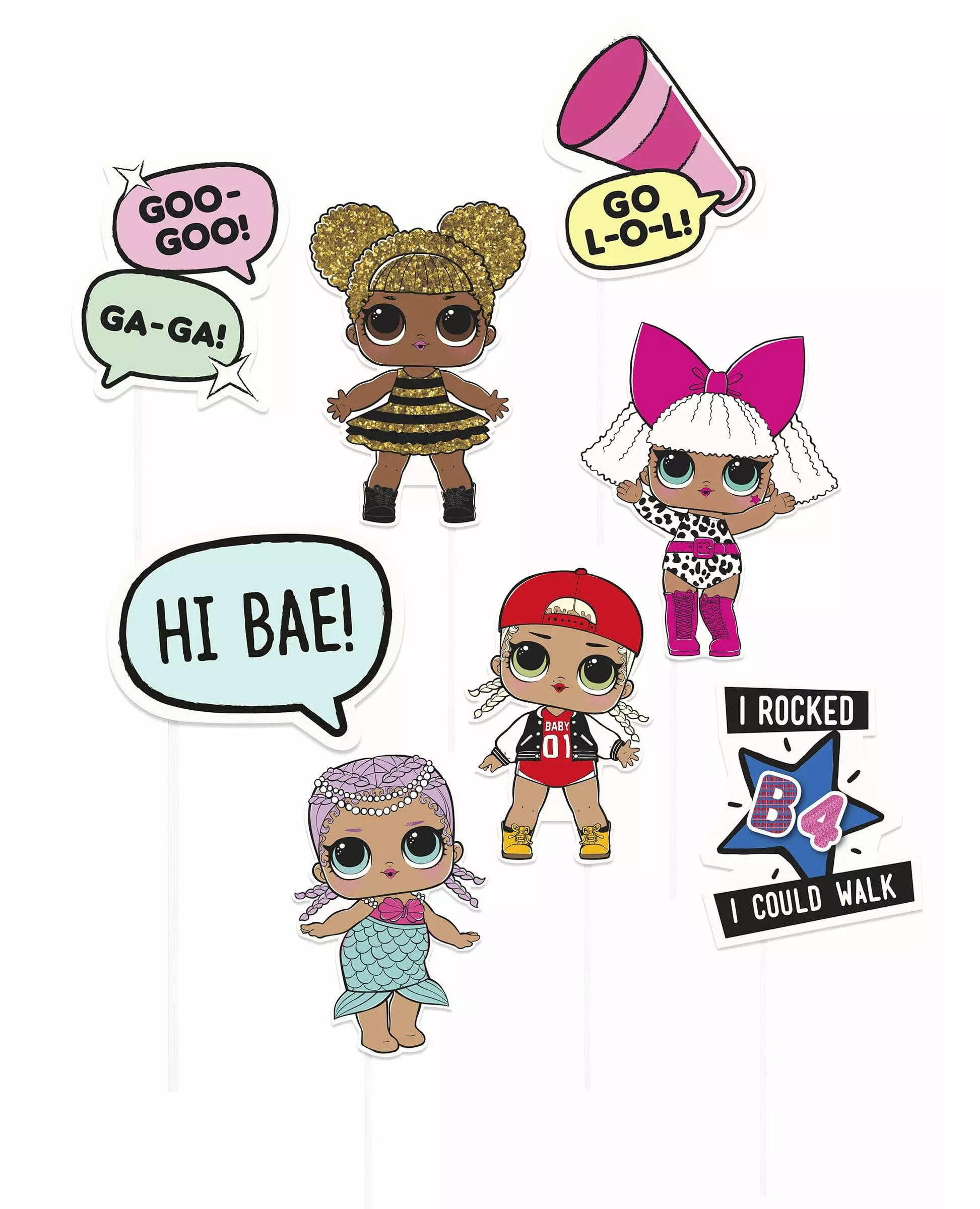 Kos deg med Lol Surprise™-dukker! Dette fotobokssettet er offisielt lisensiert av Lol Surprise™. Det inneholder 8 fotobokstilbehør som består av et pappklistremerke festet til en hvit plaststang. Du finner: - 3 snakkeboblemodeller - 1 stjerne - 4 Lol Surprise™-dukker. Med dette fotobokssettet kan du se for deg en morsom begivenhet til datterens bursdag! Ta uforglemmelige bilder av bursdagsfesten hennes! Unik festlogo. Inkludert tilbehør: 8 fotobokstilbehør Materiale: Papp, plast