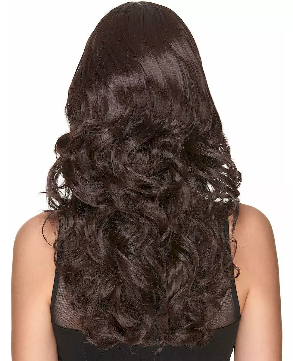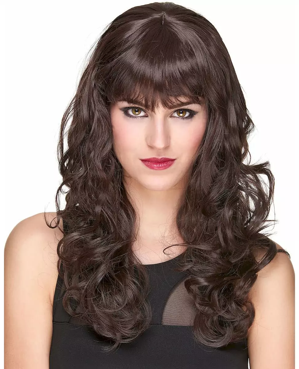 Luksuriøs brun bølget parykk med pannelugg for kvinner - 221 g