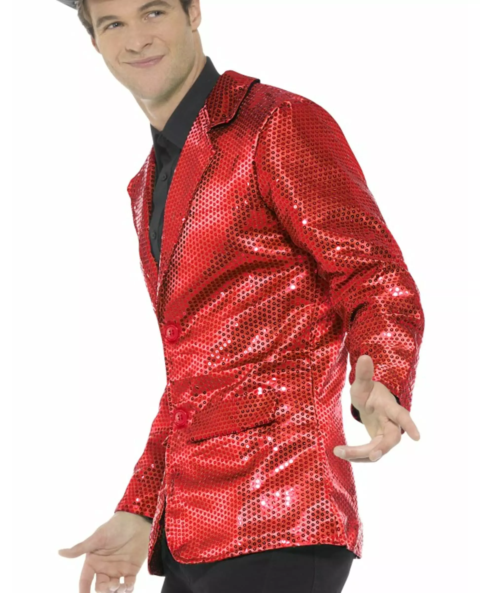 Luksuriøs rød discojakke med paljetter for menn