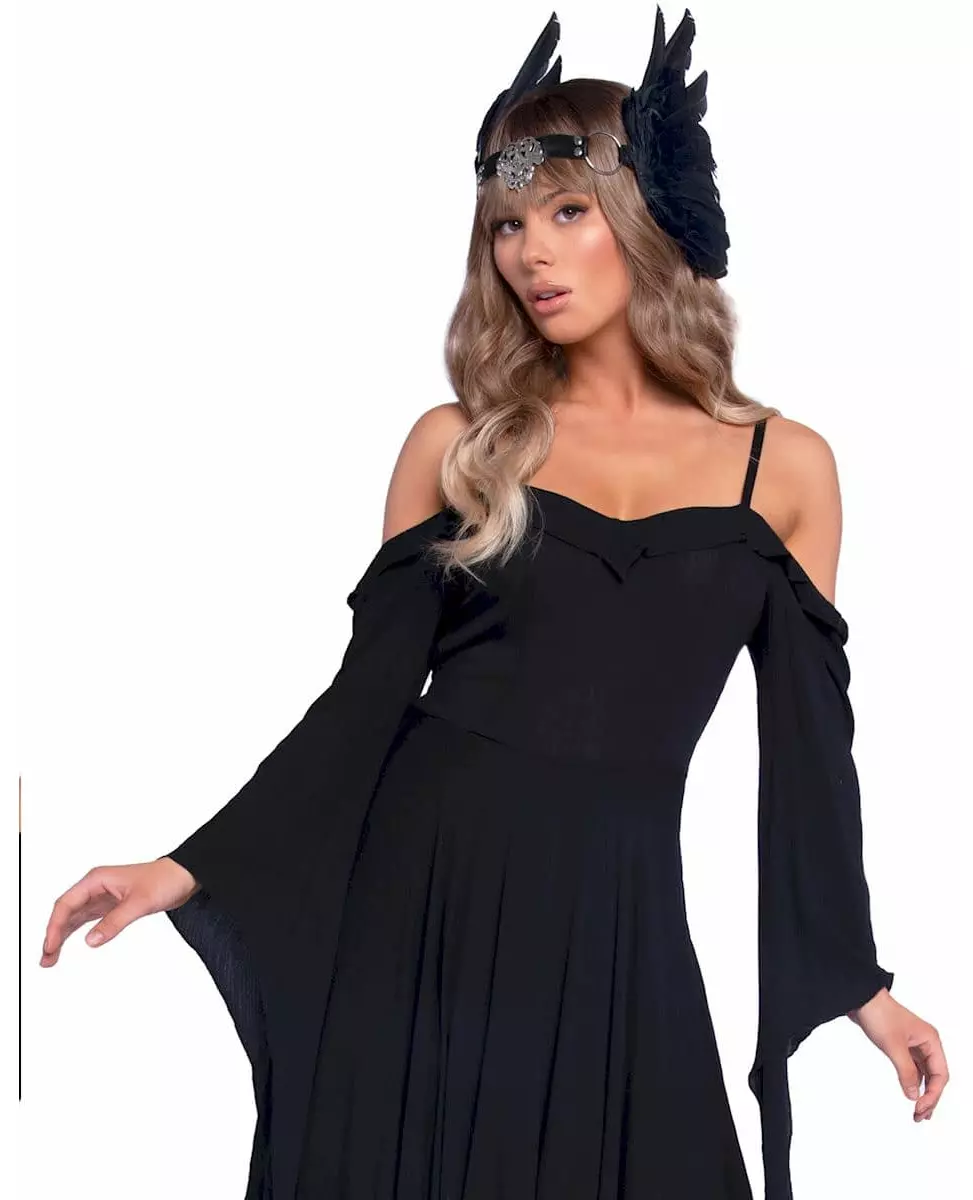 En ikke så engleaktig engel. Dette hodeplagget med svarte englevinger er for voksne. Dette originale hodeplagget har to vinger med falske svarte fjær. Det går over pannen og er dekorert med en pen sølvjuvel i midten. Et perfekt tilbehør for å fullføre et fallent engelkostyme til Halloween, nyttårsaften eller andre kostymefester. Inkludert tilbehør: Hodeplagget med vinger.