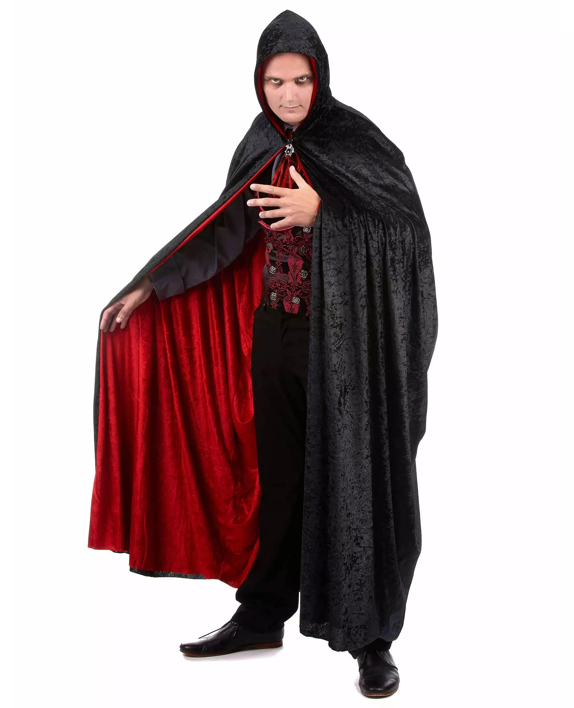 Luksuriøs vendbar rød og svart fløyelskappe med vampyr for voksne
