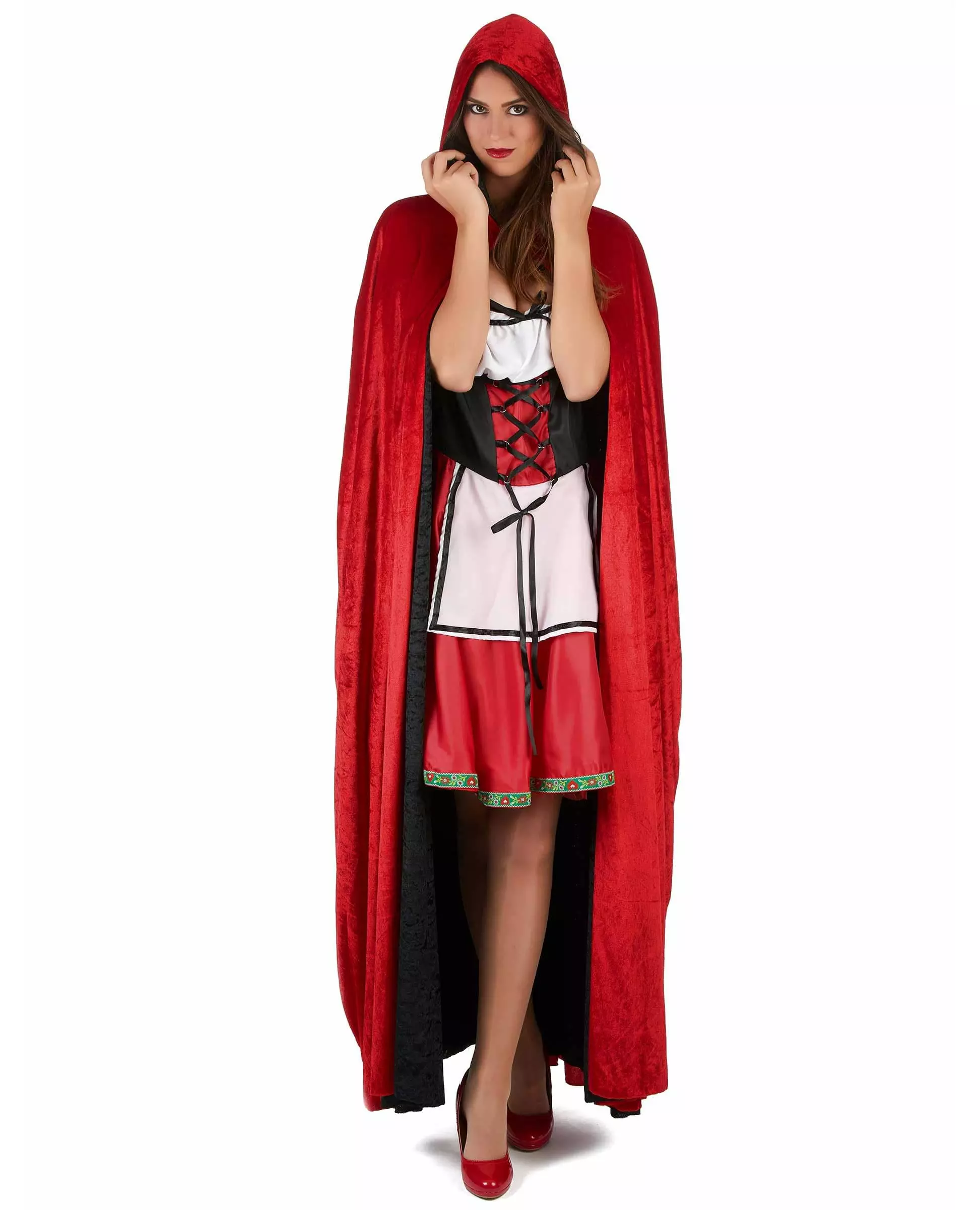 En luksuriøs kappe Denne luksuriøse vampyrkappen for voksne måler 150 cm i lengde uten hette. Laget av fløyel på begge sider, vil den dekke kroppen din med gotiske eller barokke draperinger etter ønske siden den er vendbar. En hette topper antrekket som lukkes i halsen med en knapp. Perfekt til vampyr- eller Rødhette-kostymet ditt, du vil gjøre et sterkt inntrykk kledd i denne kappen! Inkludert tilbehør: Vendbar kappe Materiale: 100 % polyester