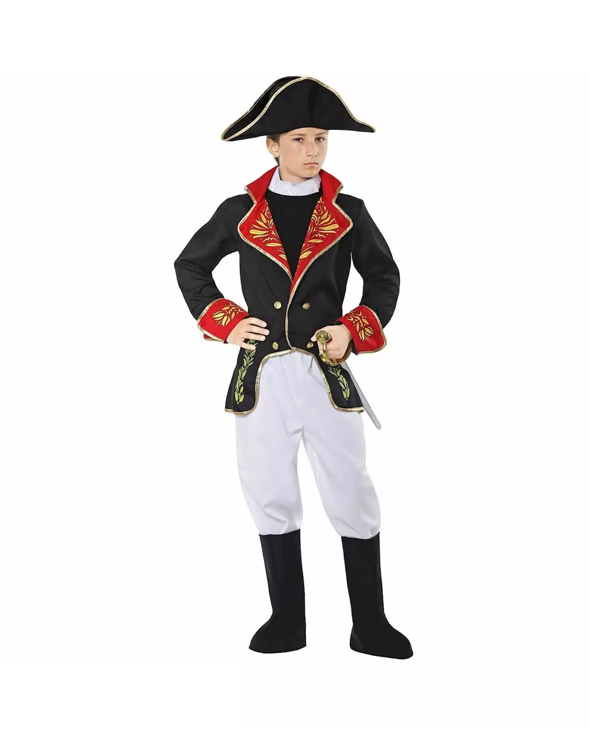 Gå inn i skoene til erobreren Napoleon med dette luksuriøse keiserkostymet for barn! Dette luksuriøse franske keiserkostymet er for barn. Det inkluderer hatt, jakke, bukse og støveltrekk. Hatten er en svart tokornshatt med gullsøm, karakteristisk for Napoleon Is silhuett. Uniformjakken er marineblå med gullknapper, og kragen og ermekantene er røde med gulldetaljer. Buksene er hvite, og du kan feste støveltrekk til skoene dine for å gi inntrykk av at du har på deg støvler. Dette franske keiserkostymet er perfekt for karneval! La oss gå for en ny kampanje! . Inkludert tilbehør: Jakke Bukser Støveltrekk Hatt Materiale: 100 % polyester Vedlikehold: Håndvask, ikke blek, ikke stryk, ikke renseri