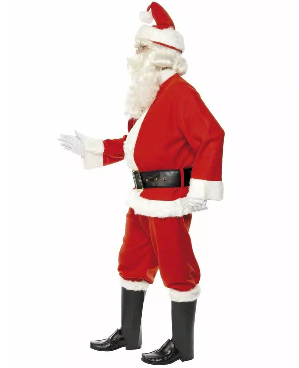 Hva gjemmer du i sekken din? Dette luksuriøse julenissekostymet er for menn. Det består av en tykk filtjakke som lukkes med borrelås, elastiske bukser i livet, et stort belte og støveltrekk i imitert skinn. Et par hansker og en lue fullfører dette antrekket, som ser ut som det er laget av filt med fuskepels på jakken og støveltrekket. Gi barna dine et uforglemmelig minne på julaften ved å spille denne legendariske figuren. Inkludert tilbehør: Jakke Bukser Belte Støveltrekk Hansker Lue Materiale: 100 % polyester Vedlikehold: Håndvask
