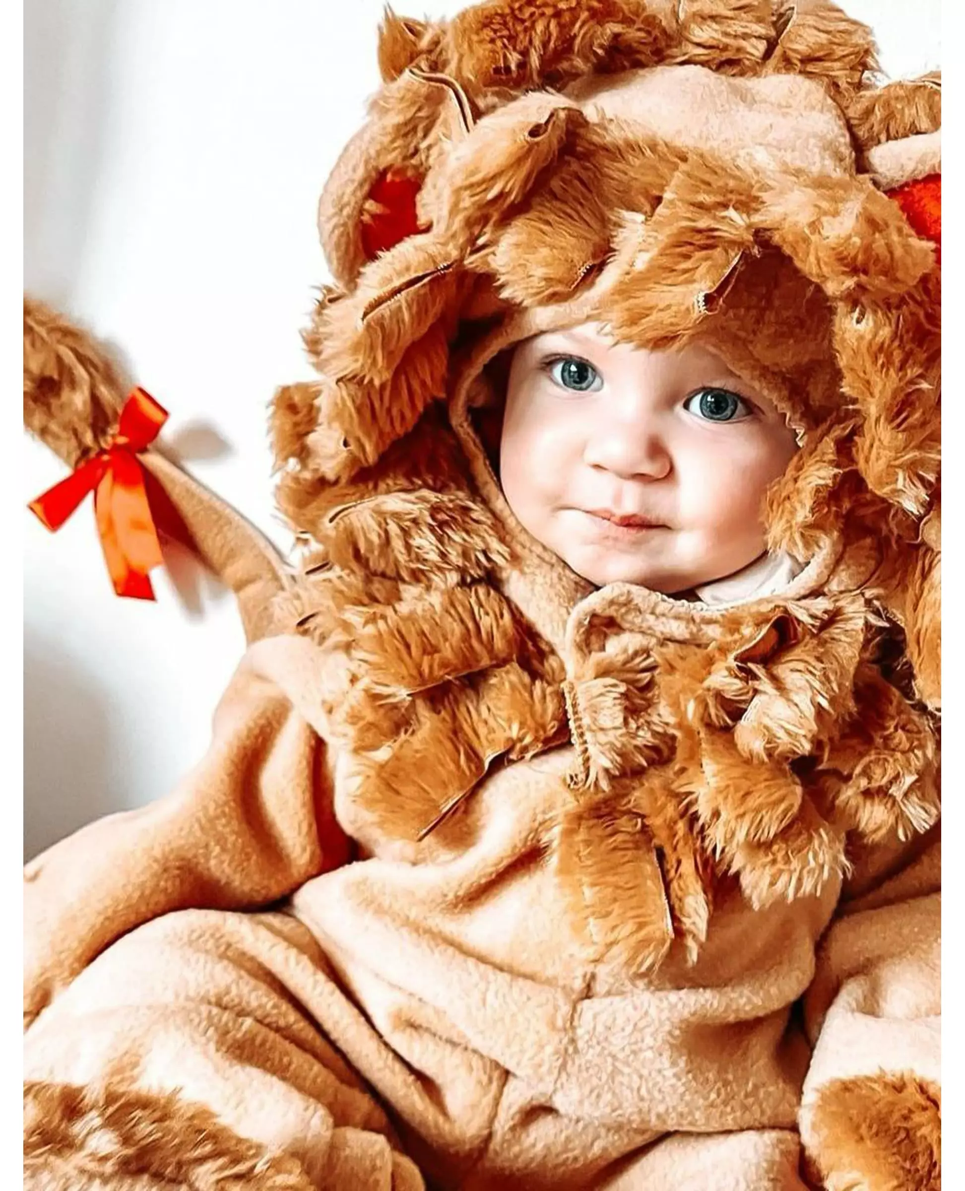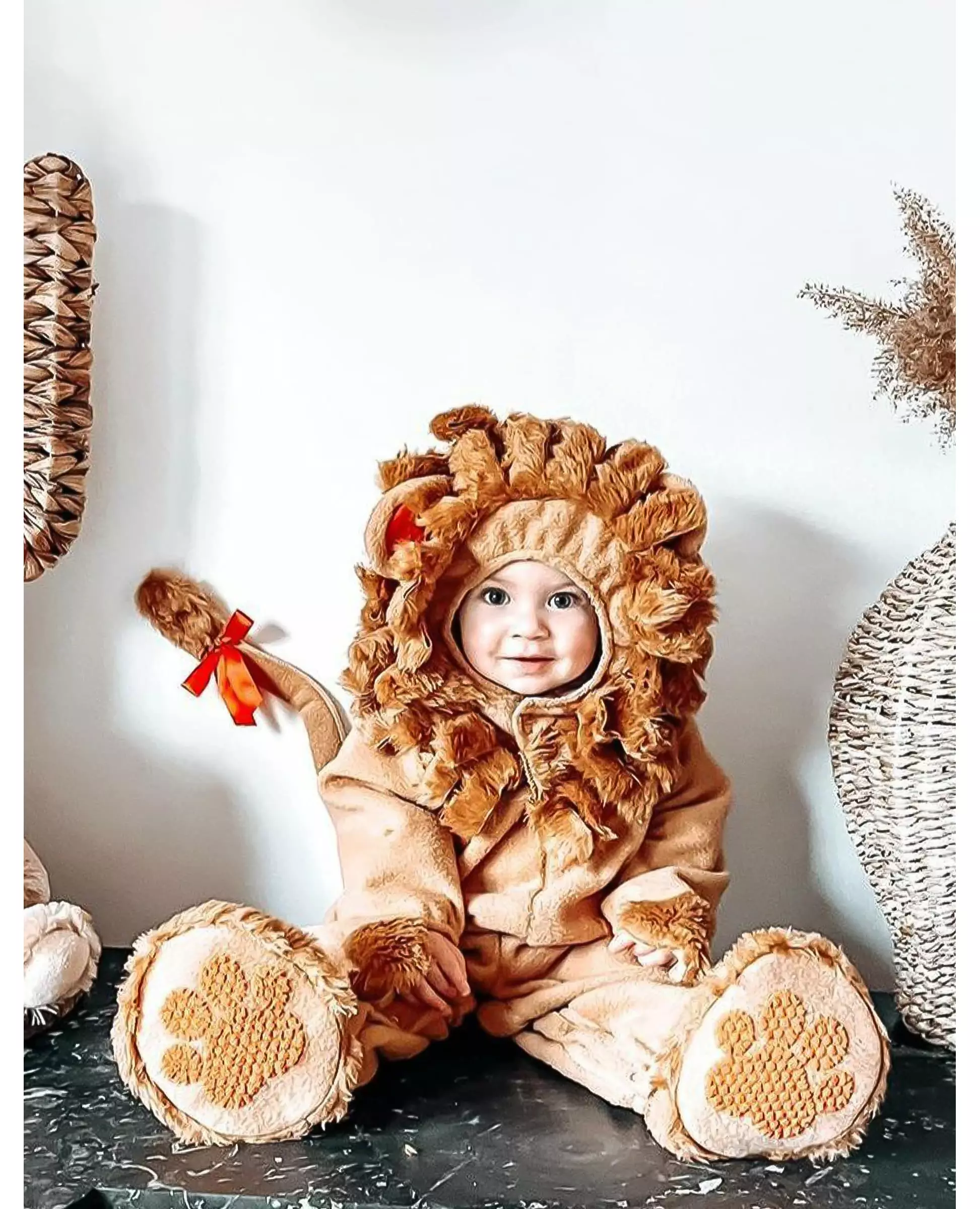 Bli jungelens lille konge! Dette løvekostymet for babyer består av en jumpsuit, en hette, et par sokker og en avtakbar hale. Jumpsuiten er lysebrun i fargen med en myk effekt. Den har en knappelukking i skrittet for å gjøre det enklere å skifte babyens bleie. Den lukkes også bak med borrelås. Hetten har en pen, voluminøs man laget av mykt stoff, med to små ører. Den er lett avtakbar takket være en ripe plassert under haken. Tøflene matcher resten, med sklisikre såler. En liten avtakbar hale med en ripe vil fullføre settet. Med dette kostymet, gjør din lille baby til jungelens konge! Inkludert tilbehør: Jumpsuit Avtakbar hale Et par tøfler En hette Materiale: 100 % polyester Vedlikehold: Håndvask
