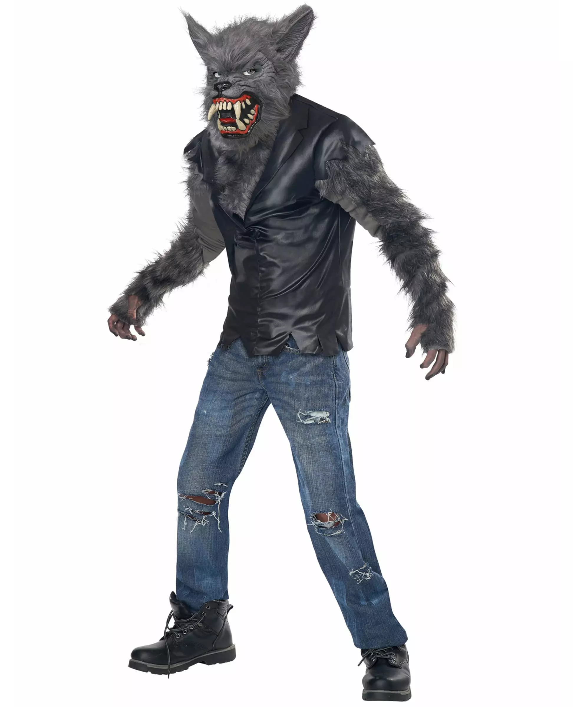 Den store stygge varulven Dette store stygge varulvkostymet er for barn. Det inkluderer en heldekkende maske og en topp med vest. Helmasken er en imitasjon av et truende varulvsansikt. Grå fuskepels er tilstede på denne masken for enda mer realisme. Toppen er en grå fuskepelsgenser. Den er polstret for å gi volum. En vest er sydd på toppen. Den er laget av svart imitert skinnstoff. Dette varulvkostymet vil være perfekt for en skrekk-tema fest eller til Halloween. Inkludert tilbehør: Helmaske, Topp, Vest, Materiale: 100 % polyesterstoff,