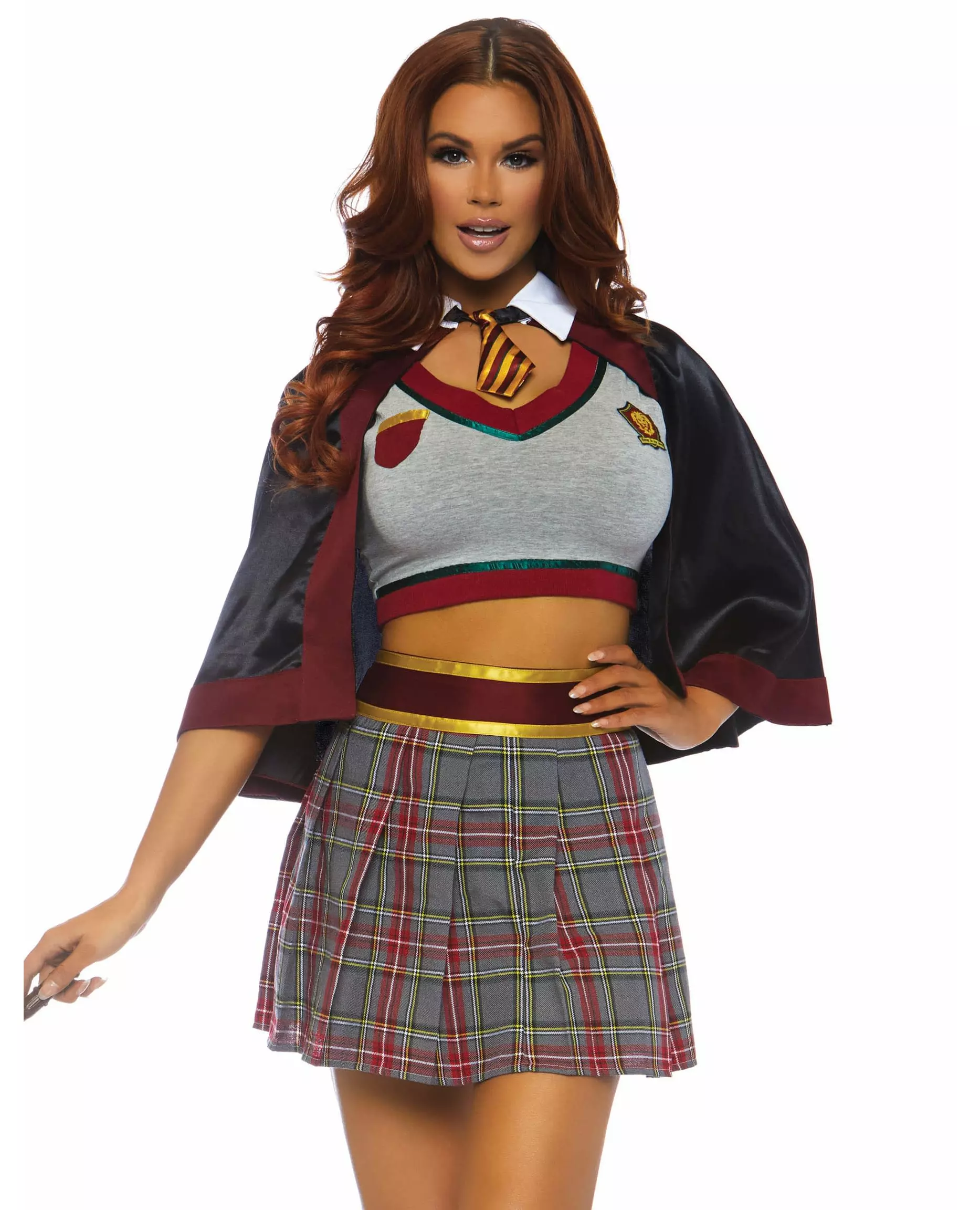 Luksuriøst sexy burgunder og gull heksekostyme for kvinner. Du trenger ikke et kjærlighetsfilter med dette kostymet. Dette sexy heksekostymet for kvinner består av en topp, et skjørt og en kappe med slips. Voksenkostymet inkluderer: Skjørt, topp, kappe med slips.