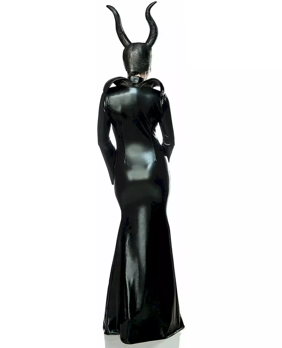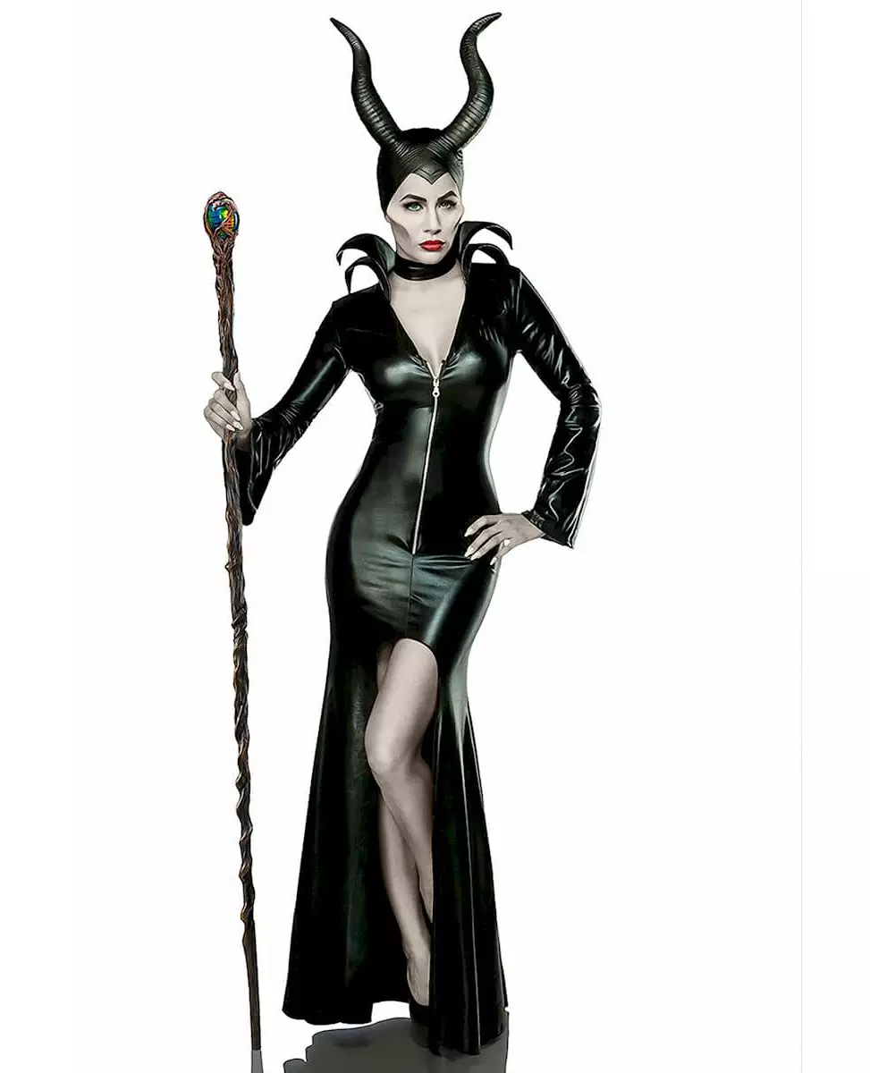 Spill som en ond heks! Dette onde heksekostymet for kvinner består av en kjole og et hodeplagg (septer og sko er ikke inkludert). Kjolen har svart læreffekt, den er lang med et snitt i skjørtet som avslører forsiden av bena dine. Ermene er lange. Du kan åpne og lukke den takket være en stor glidelås på forsiden av kjolen. Hodeplagget er svart med to store onde heksehorn. Dette onde heksekostymet vil være perfekt for for eksempel en kostymefest med eventyrtema! Inkludert tilbehør: Kjole Hodeplagg Materiale: 90 % polyamid, 10 % elastan Pleie: Håndvask