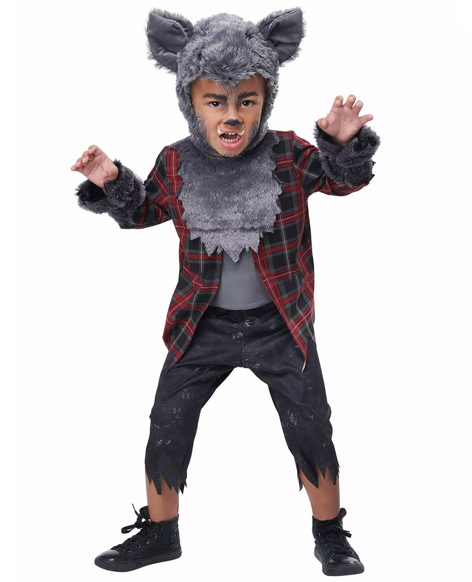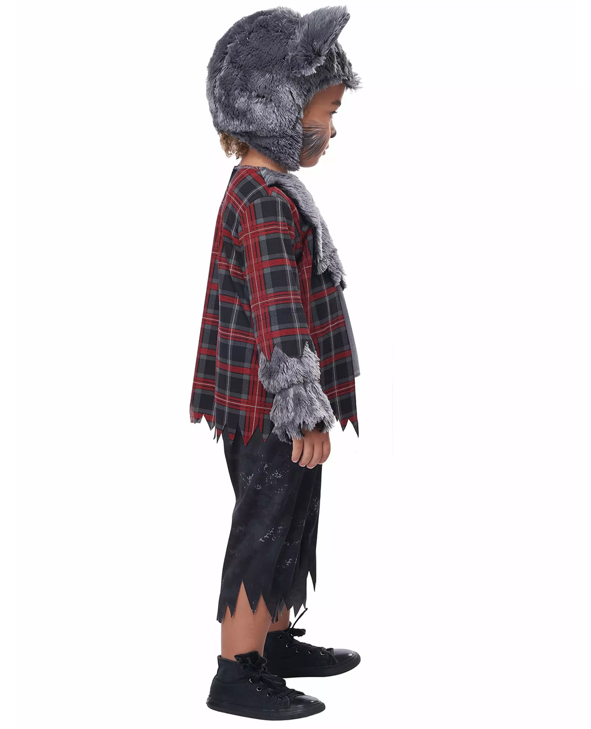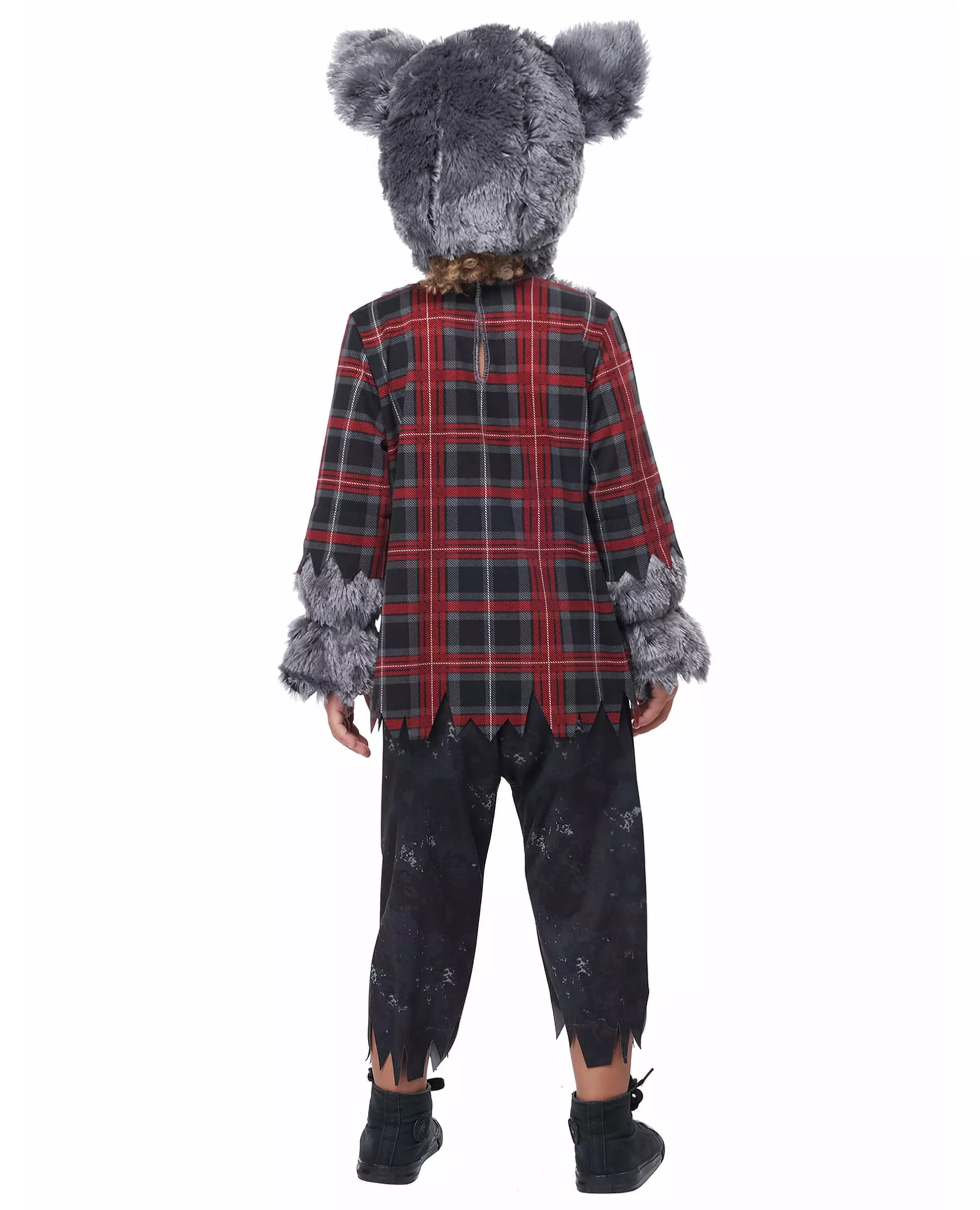 Graooouuu, en varulv klar for alt til Halloween! Dette varulvkostymet er for barn. Det består av en skjorte, en hette og bukser (sko ikke inkludert). Skjorten er rutete med en grå t-skjorte under, mens hetten er laget av fuskepels og har hodet til en varulv med ører og en torso i fuskepels som også finnes på ermene. Buksene gir derimot en illusjon av revne jeans for ekstra realisme. Ville du våget å gå ut og knask eller knep med barnet ditt utkledd som en varulv?! Materiale: 100 % polyester. Inkludert tilbehør: Skjorte, balaklava, bukser,