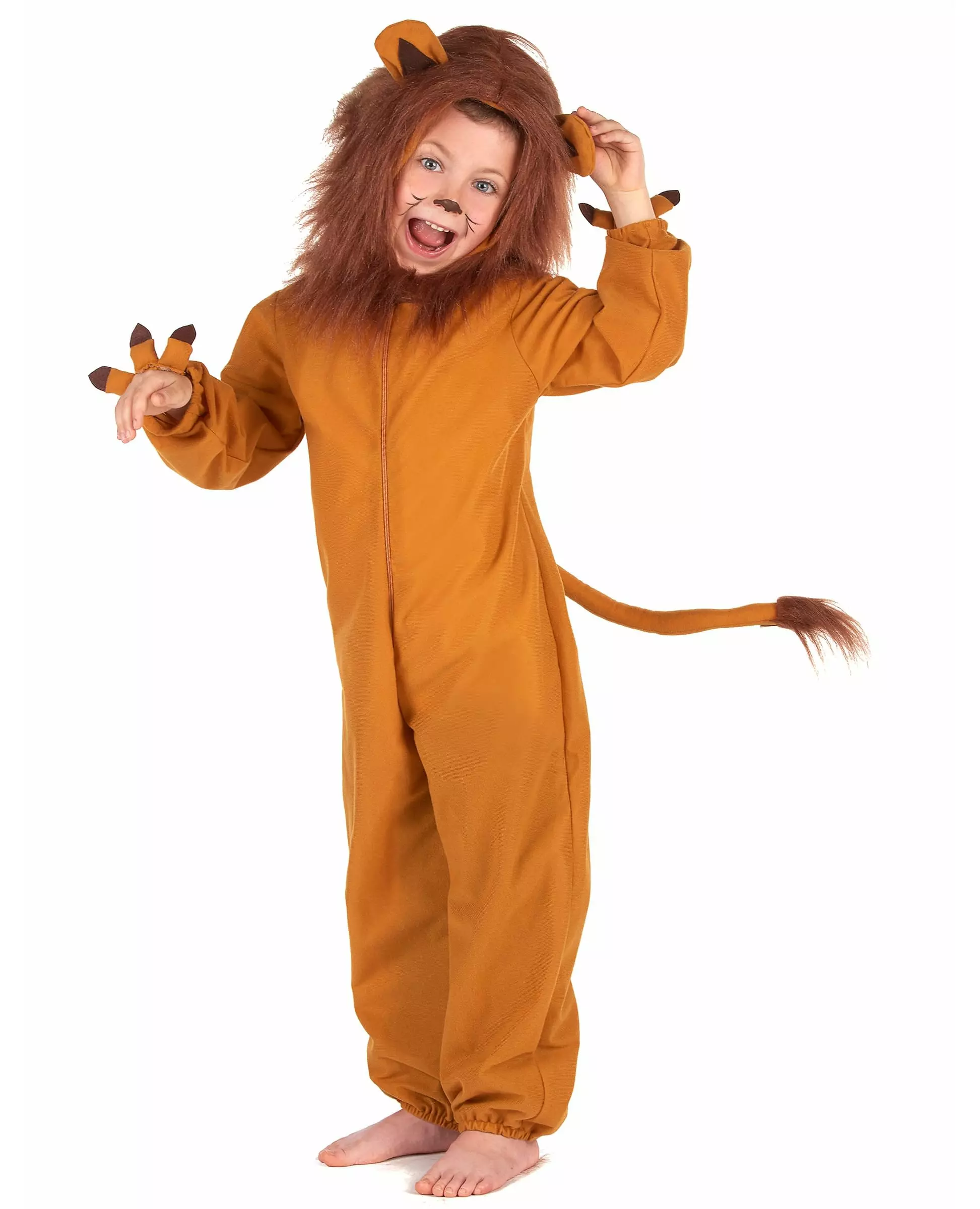 Jungelkongen er klar til å brøle! Dette løvekostymet for barn består av en hettegenser. Stoffet med fleeceeffekt gjør den behagelig å ha på seg, enten du løper rundt som en ekte jungelkonge eller holder deg varm som i pysjamas. Håndledd og ankler er utstyrt med strikk som gir god passform for å leke med ville dyr på den afrikanske savannen! Veldig praktisk, jumpsuiten lukkes foran med glidelås. Hetten har et par ører og en flamboyant gyllen man. På baksiden fullfører en hale dette kostymet. Nok til å være godt forkledd til karneval eller under en kveld med dyretema. Tilbehør inkludert: Jumpsuit Materiale: Polyester Stell: Håndvask