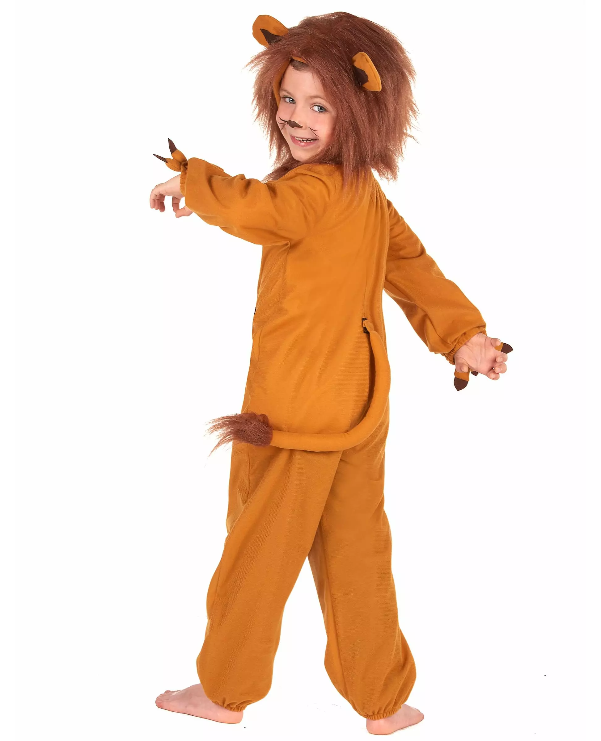 Jungelkongen er klar til å brøle! Dette løvekostymet for barn består av en hettegenser. Stoffet med fleeceeffekt gjør den behagelig å ha på seg, enten du løper rundt som en ekte jungelkonge eller holder deg varm som i pysjamas. Håndledd og ankler er utstyrt med strikk som gir god passform for å leke med ville dyr på den afrikanske savannen! Veldig praktisk, jumpsuiten lukkes foran med glidelås. Hetten har et par ører og en flamboyant gyllen man. På baksiden fullfører en hale dette kostymet. Nok til å være godt forkledd til karneval eller under en kveld med dyretema. Tilbehør inkludert: Jumpsuit Materiale: Polyester Stell: Håndvask