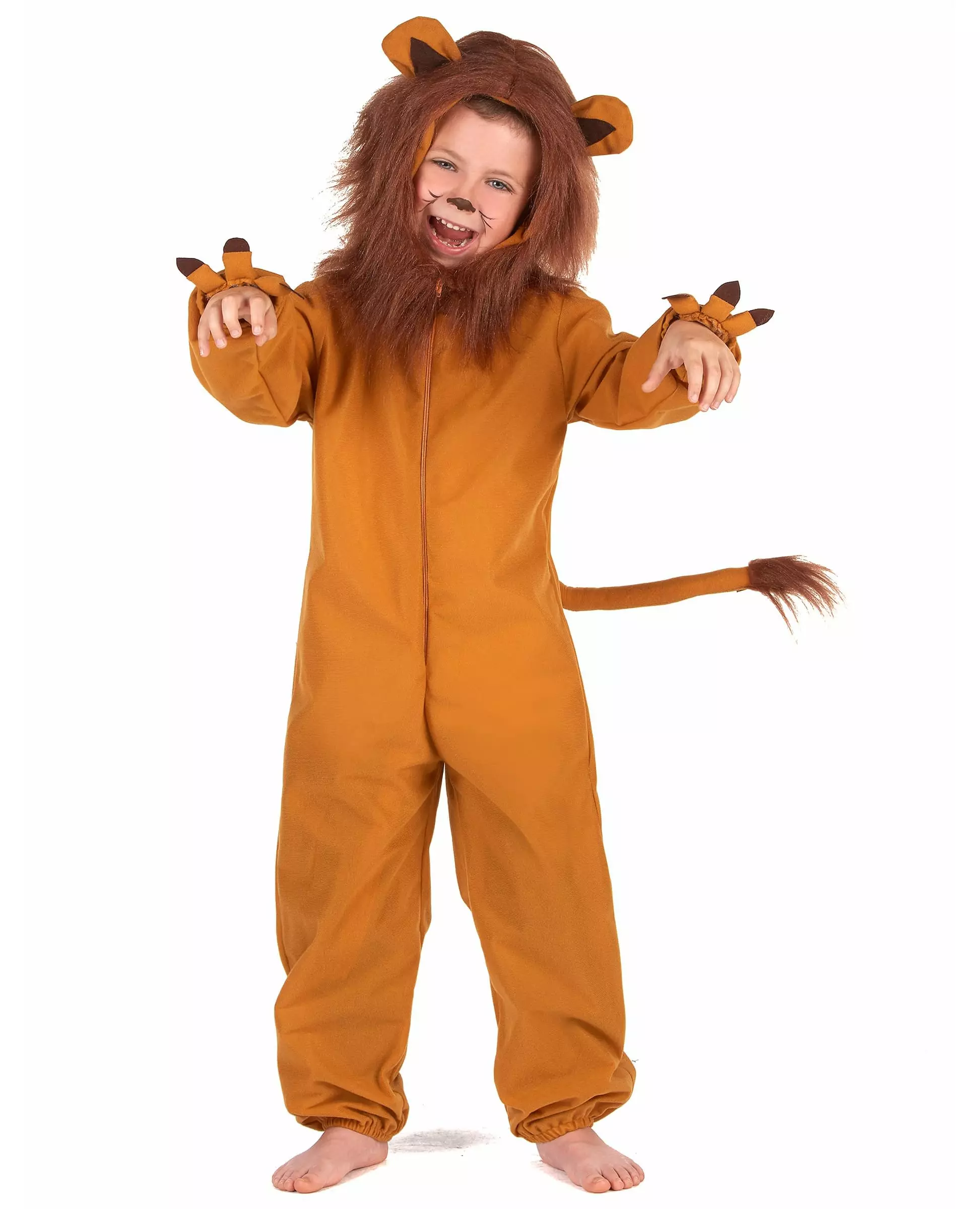 Jungelkongen er klar til å brøle! Dette løvekostymet for barn består av en hettegenser. Stoffet med fleeceeffekt gjør den behagelig å ha på seg, enten du løper rundt som en ekte jungelkonge eller holder deg varm som i pysjamas. Håndledd og ankler er utstyrt med strikk som gir god passform for å leke med ville dyr på den afrikanske savannen! Veldig praktisk, jumpsuiten lukkes foran med glidelås. Hetten har et par ører og en flamboyant gyllen man. På baksiden fullfører en hale dette kostymet. Nok til å være godt forkledd til karneval eller under en kveld med dyretema. Tilbehør inkludert: Jumpsuit Materiale: Polyester Stell: Håndvask