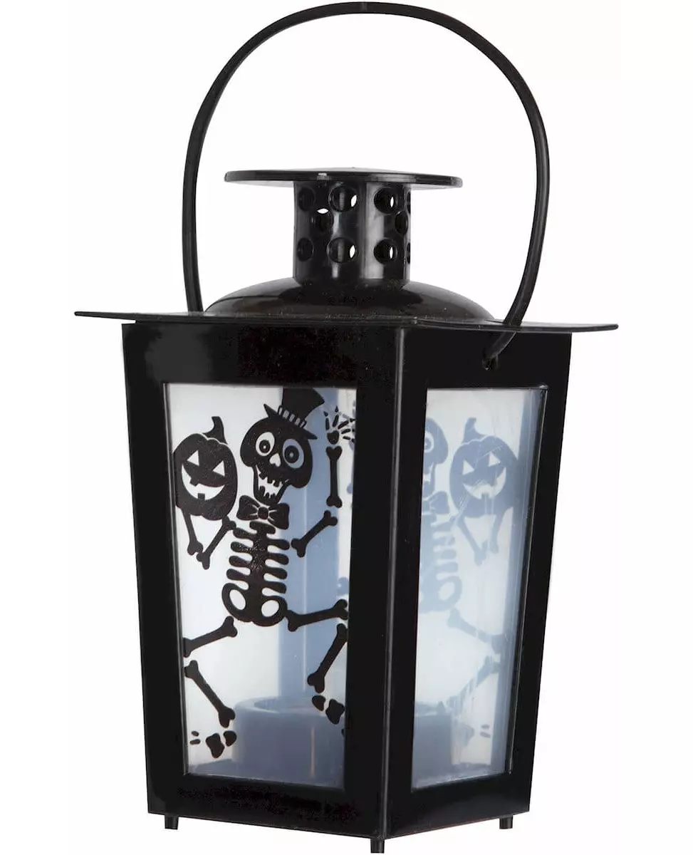 Lys opp som i gamle dager med denne Halloween-lykten! Denne Halloween-lykten måler omtrent 8 x 8 x 15 cm. Den ser ut som en vintage-lykt med gjennomsiktige vegger med morsomme skjelettmønstre. Tenn dette lyset med CR2032-batteriet som følger med. Når du går i gatene i nabolaget ditt, vil skjelettskygger dukke opp på veggene! Ta med denne lykten på din neste tur midt på natten på Halloween-kvelden! Materiale: Plast. Inkludert tilbehør: Lyktbatteri