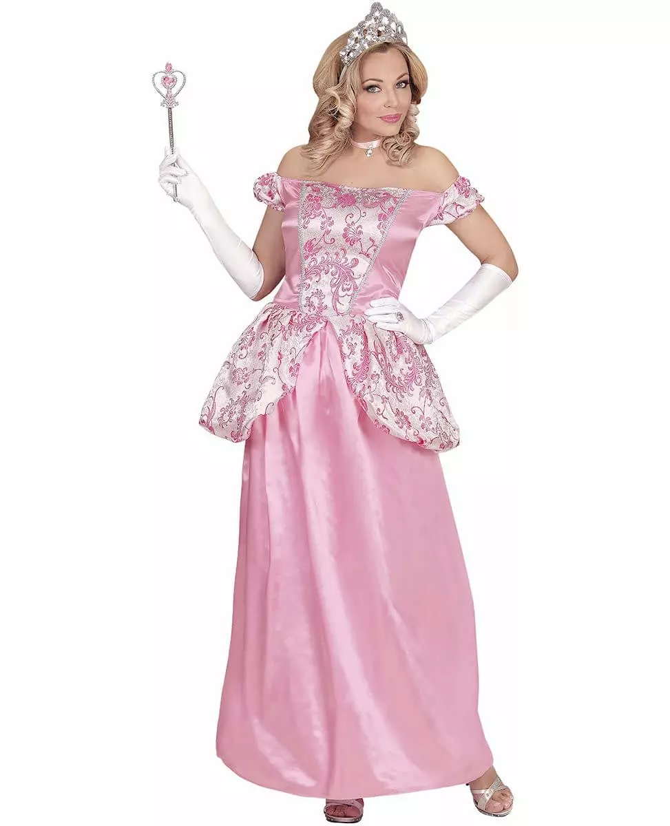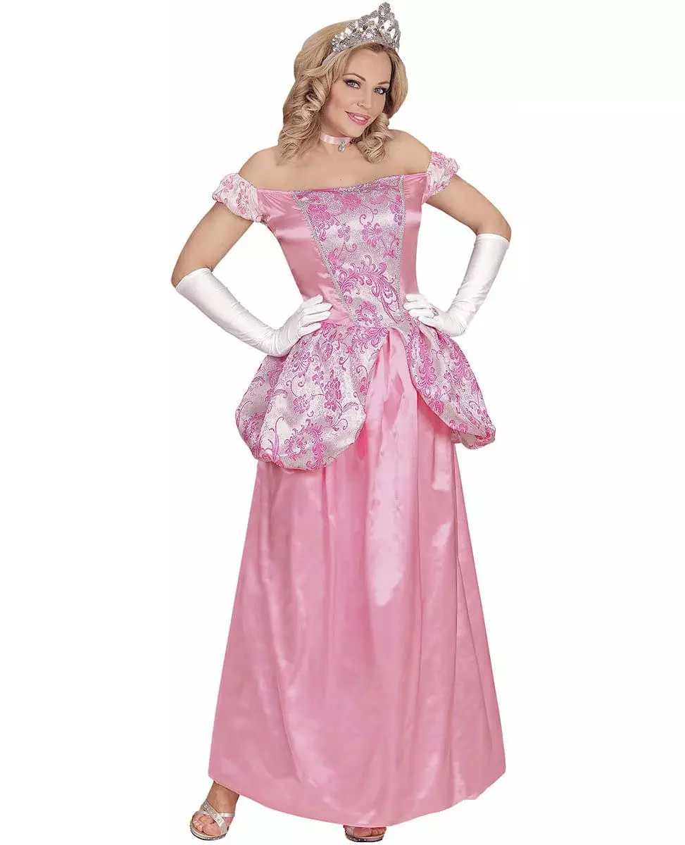 En prinsessedrøm til karnevalet! Dette lyserosa prinsessekostymet for kvinner består av en lang kjole, et par hansker, et halskjede og en tiara. Kjolen med satengeffekt har et utsvingt snitt og korte, nedhengte ermer, noe som gir den en kongelig sjarm. Det broderte bærestykket foran og små rysjer på hoftene gir et snev av eleganse verdig en ekte prinsesse. De lange hvite hanskene gir et elegant utseende, mens halskjedet og den glitrende tiaraen fullfører antrekket perfekt. Perfekt for en utkledningsfest, en bursdag eller karneval, dette kostymet vil forvandle deg til en prinsesse fra et eventyr! Inkludert tilbehør: 1 kjole 1 par hansker 1 halskjede 1 tiara Materiale: 100 % polyester Vedlikehold: Håndvask