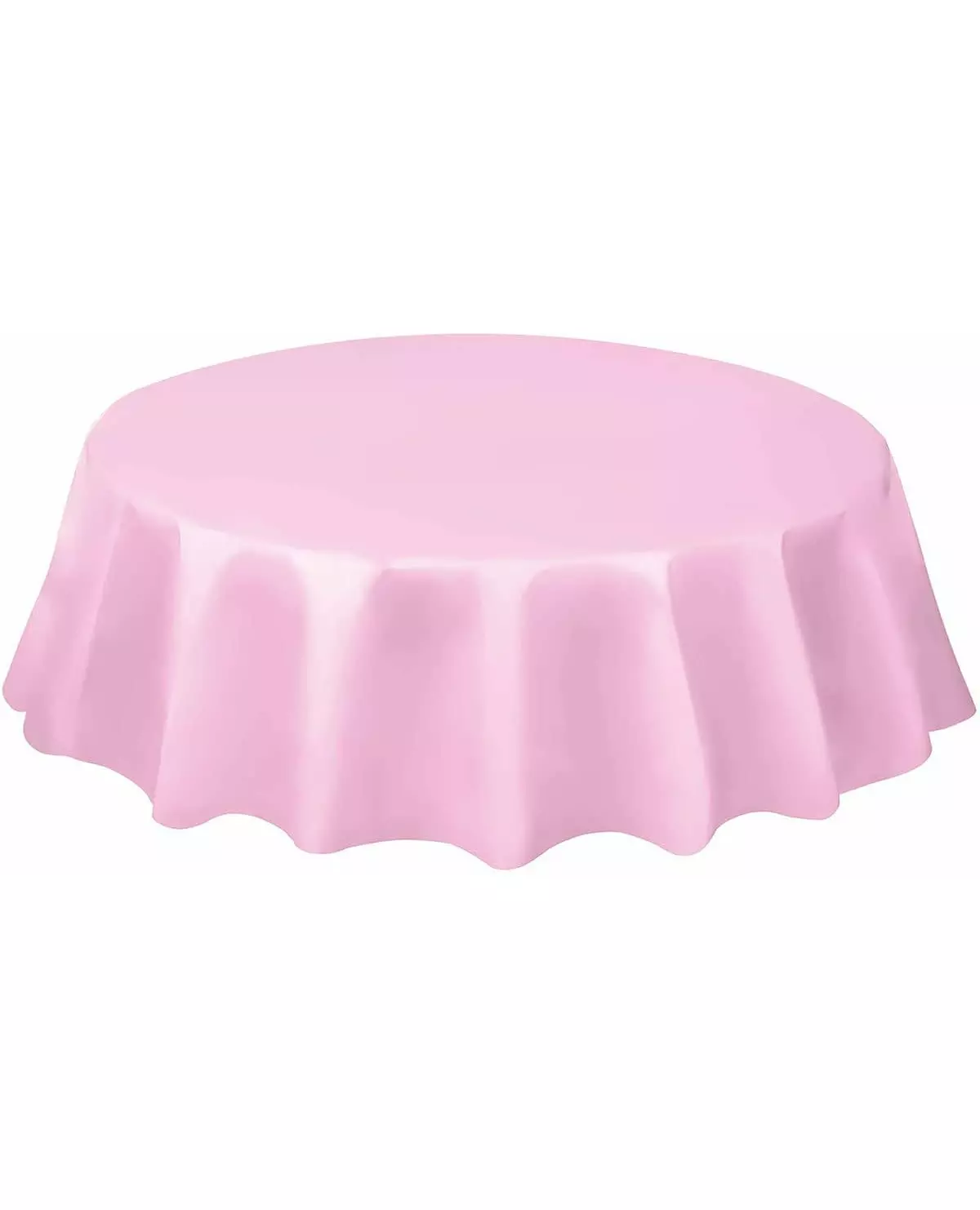 Lyserosa rund plastduk 213 cm Til babyshower eller bursdag i rosa. Denne tynne plastduken måler omtrent 2,5 cm.