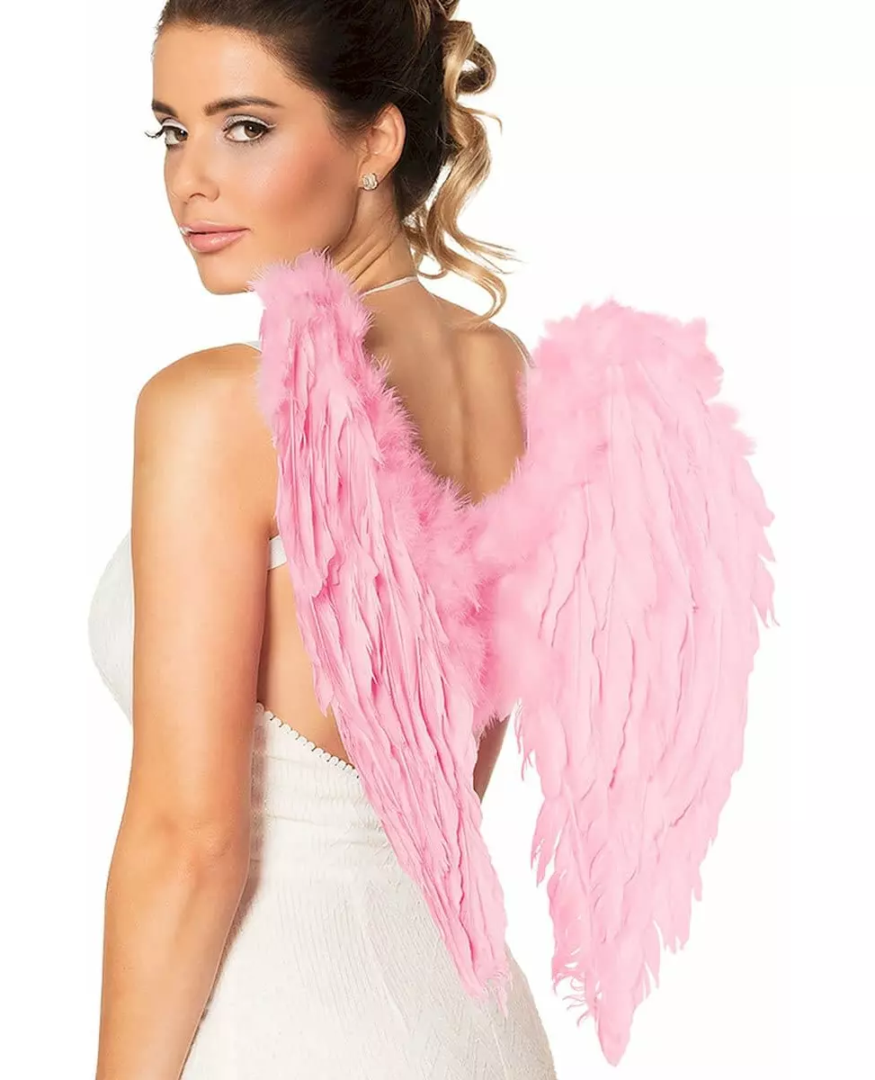 Disse voksne englevingene er lyserosa i fargen. De er dekket med falske fjær. De måler omtrent 50 x 50 cm og kan bæres som en ryggsekk med elastiske stropper. Disse vingene vil være perfekte for å fullføre et englekostyme, samtidig som de gir antrekket ditt et fargerikt preg. Inkludert tilbehør: Par vinger Materiale: 100 % syntetisk materiale 100 % syntetisk materiale