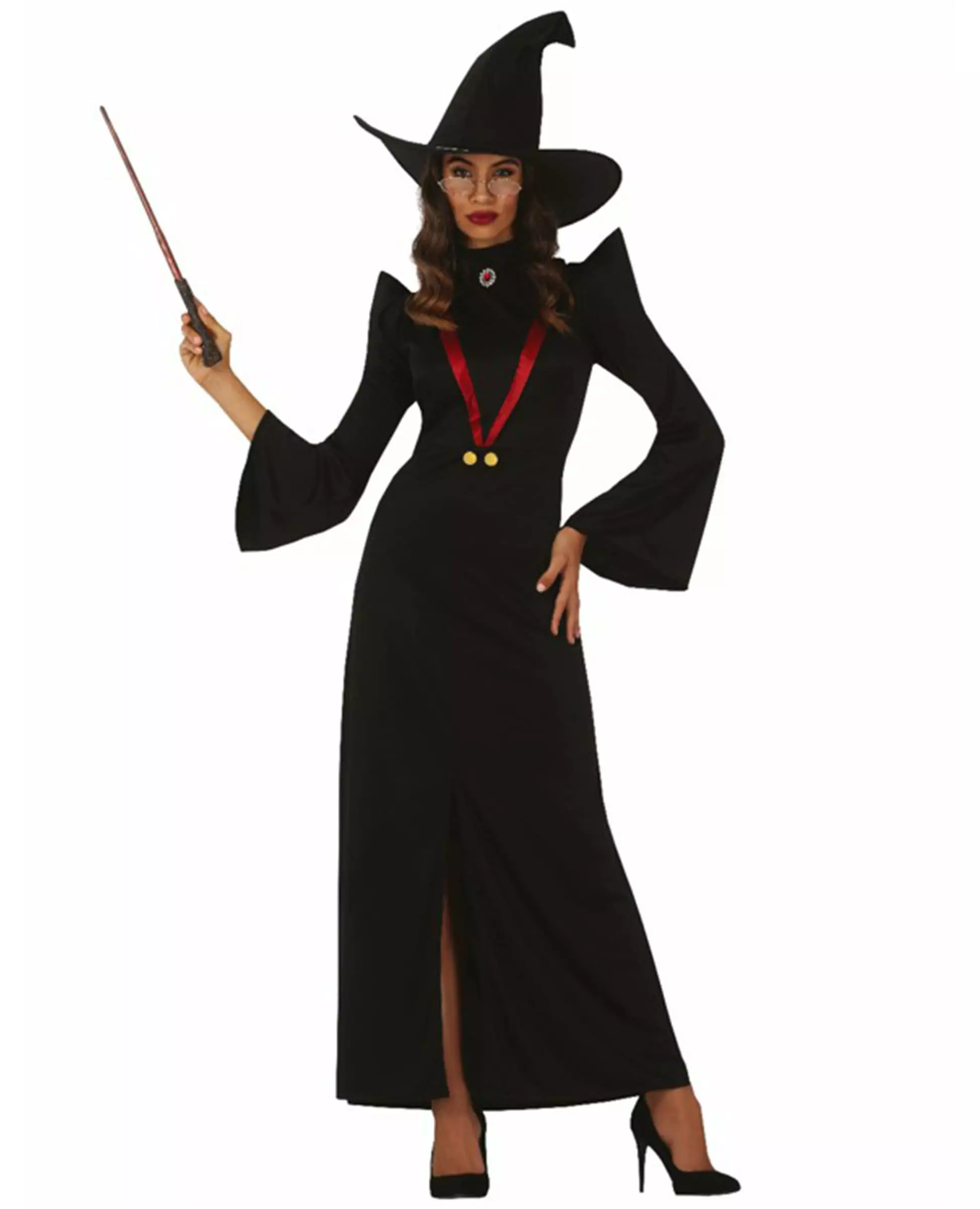 Bli lederen for lærlingene i magikerne! Dette magilærerkostymet for kvinner inkluderer hatt og tunika (klaff ikke inkludert). Tunikaen har lange ermer med spisse skulderstropper. Kjolens nederste del når knærne og har en åpning foran. Kragen er rød og har to små gullknapper. Hatten er svart og spiss som hatten til ekte magikere. Bruk dette magilærerantrekket til en Harry Potter-temafest eller til Halloween! Materiale: 100 % POLYESTER. Inkludert tilbehør: Hatt-tunika. Stell: Håndvask.