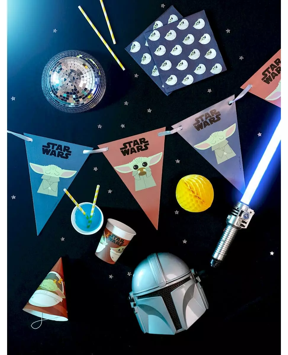 Perfekt til en festdekorasjon med Star Wars-tema! Denne pappvimpelen med Baby Yoda The Mandalorian™ måler omtrent 2,3 m. Baby Yoda er avbildet i midten av hver vimpel, på en rød eller lilla bakgrunn, med Star Wars-skrift over. Dekorer hjemmet ditt med denne søte Baby Yoda-vimpelen til en bursdag med Star Wars-tema! Inkludert tilbehør: 1 girlander Materiale: Papp