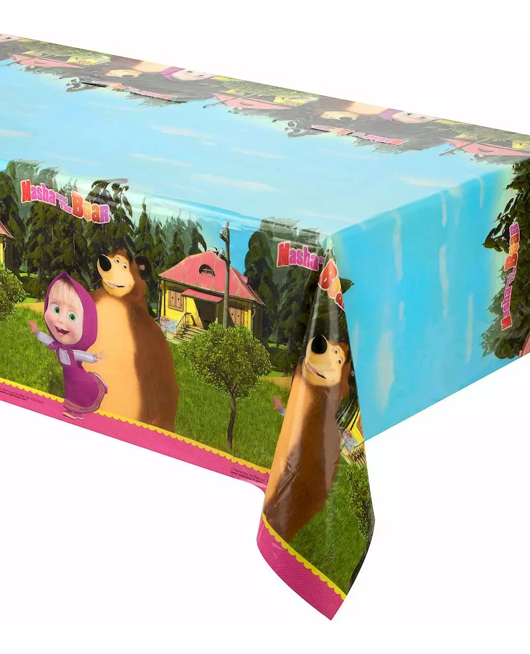 En flott bursdag med Masha og Bjørnen! Denne offisielt lisensierte duken er laget av Masha og Bjørnen-plast. Den måler omtrent 120 x 180 cm. På kantene finner du et trykk som representerer de kjente figurene fra tegneserien, og i midten et blått trykk med skyer. Denne duken vil være perfekt for å fullføre dekorasjonen din til en Masha og Bjørnen-bursdag. Inkludert tilbehør: Plastduk Materiale: Plast