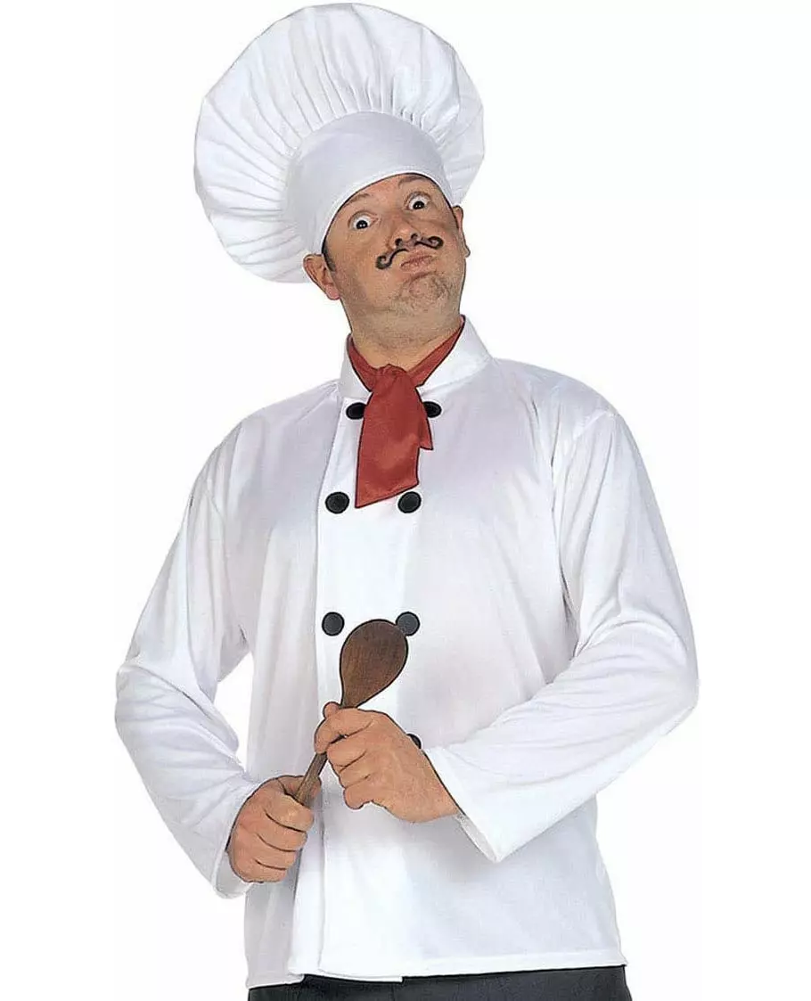 Bli kjøkkenmesteren! Dette kokkesettet for voksne inneholder en lue, en frakk og et skjerf. Luen er en hvit kokkelue som kan gjøres puffy takket være stoffet fôret med fin, krøllet plast. Den passer til en hodeomkrets på omtrent 57 cm. Frakken er også laget av hvitt stoff. Den lukkes veldig enkelt på forsiden med borrelåsfester skjult av svarte sirkler i stoffet "imitasjonsskinn" som ligner knapper. Kragen er halvstiv, noe som sikrer at den sitter perfekt på nakken! Restaurantdisiplin krever det! Til slutt er skjerfet laget av satengrødt stoff og knytes enkelt rundt halsen. Få et løft med dette settet og arranger et måltid med vennene dine på kostymefester eller til et show, for eksempel. Copyright Widmann SRL. Inkludert tilbehør: Lue, jakke, skjerf Materiale: 100 % polyester Pleie: Håndvask