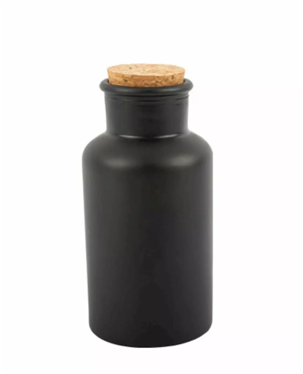 Matt svart apotekflaske med korkpropp 17 cm 500 ml