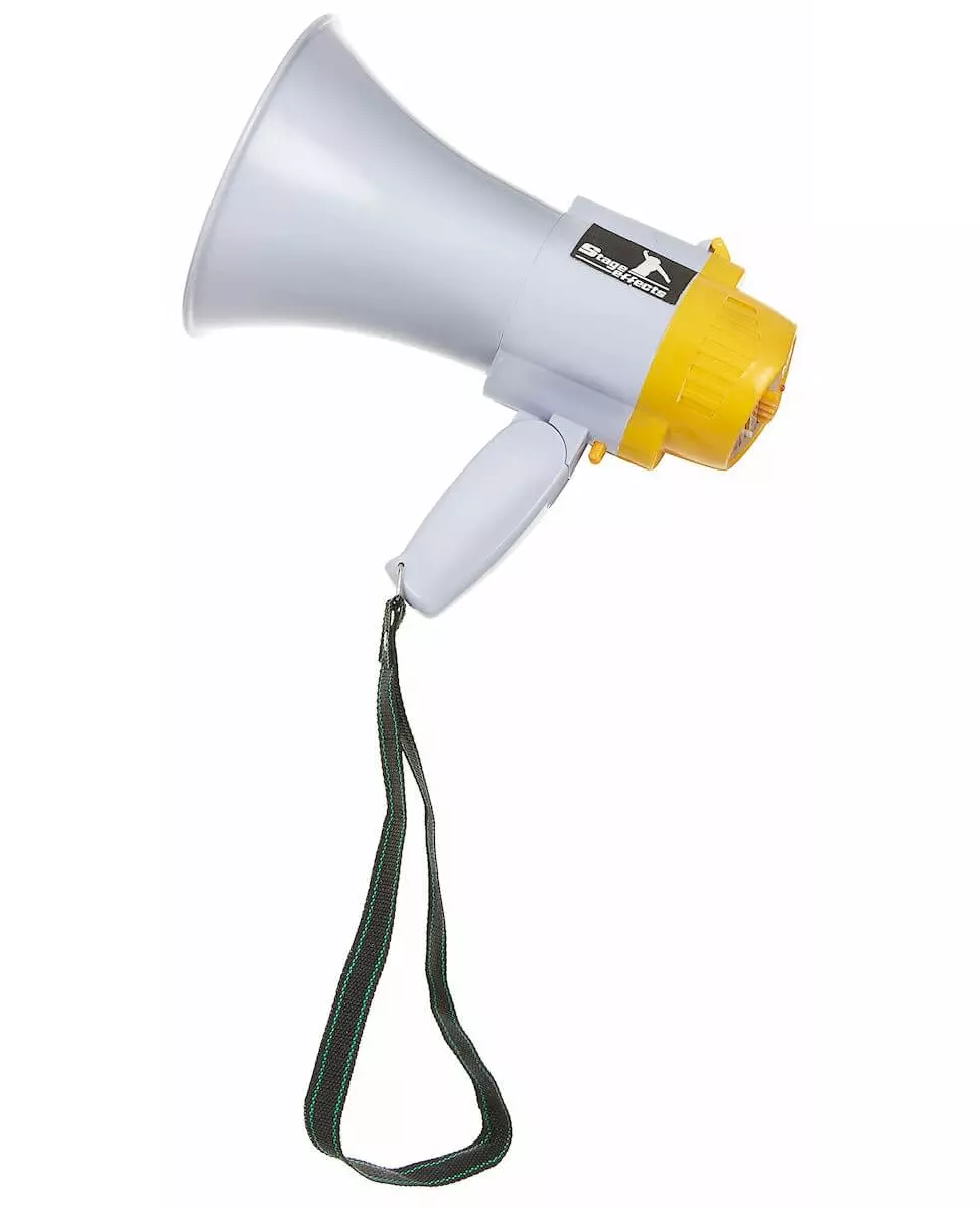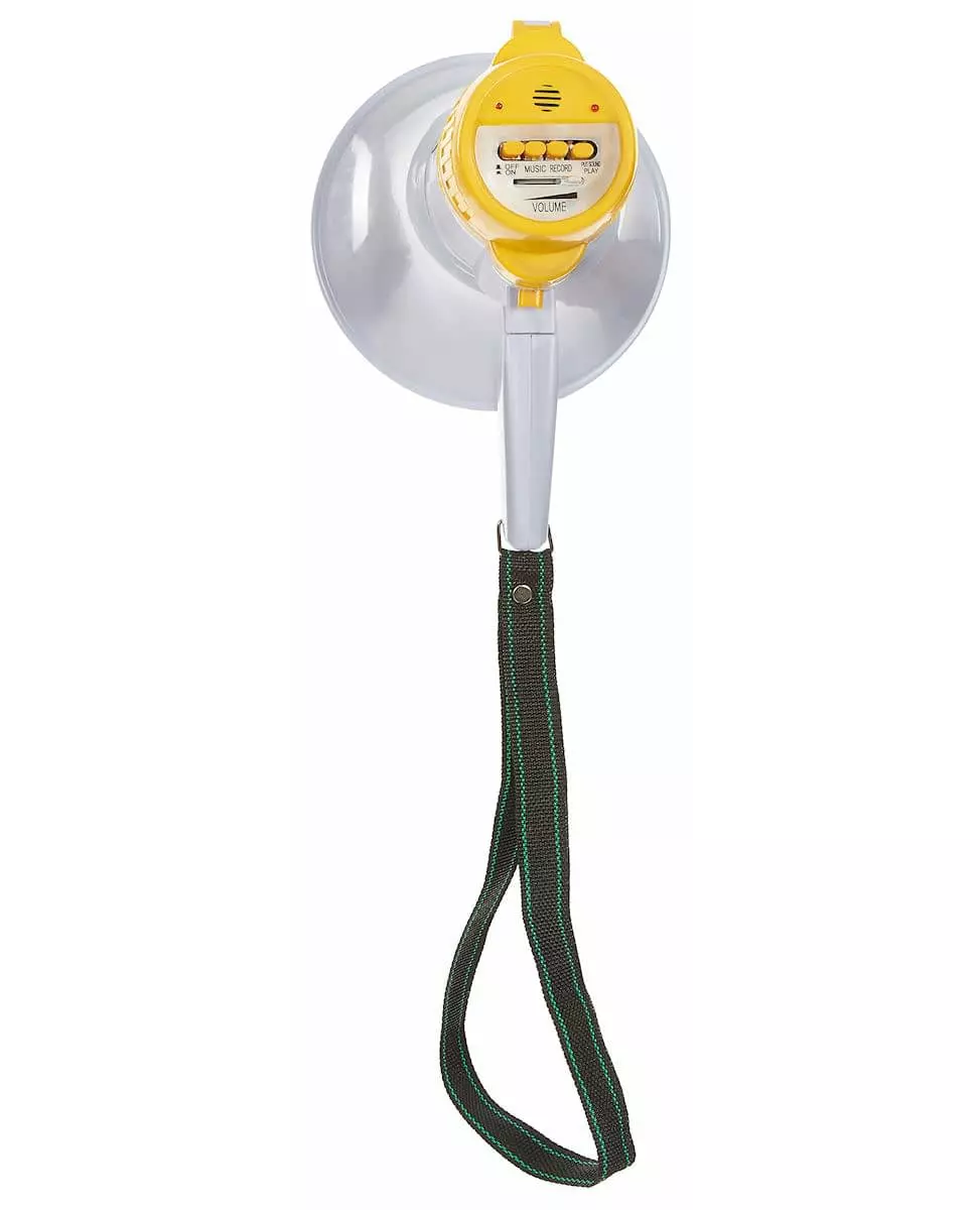 Gjør deg hørt! Denne megafonen, omtrent 24 cm lang, er grå og gul i fargen og har en sammenleggbar arm hvor det er festet en svart og grønn stropp på omtrent 30 cm. Den tilbyr fire alternativer, nemlig: et alternativ for stemmeforsterker, opptak i 8 sekunder, avspilling av det innspilte lydsporet, melodisending og til slutt volumkontroll. Aktivering av disse alternativene sikres av fire trykknapper plassert på baksiden av enheten. Lyden som gjengis vil være mellom 40 og 100 desibel (enheten fungerer med 4D ikke inkludert). Dra nytte av denne megafonen for en garantert lydeffekt under arrangementer eller show. Inkludert tilbehør: Megafon,