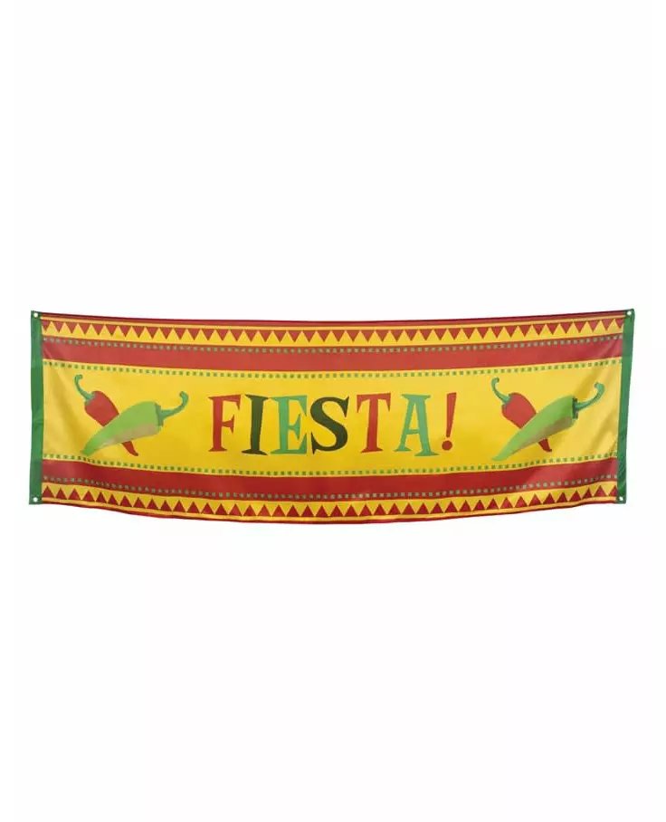 220 cm x 74 cm! Dette banneret i Mexicos farger måler omtrent 220 x 74 cm. Du kan enkelt feste det med små ringer i de fire hjørnene. Dette elementet har påskriften «FIESTA» og vil være ideelt for å dekorere rommet ditt under et kostyme- eller temaarrangement. Inkludert tilbehør: Bannermateriale: 100 % polyester