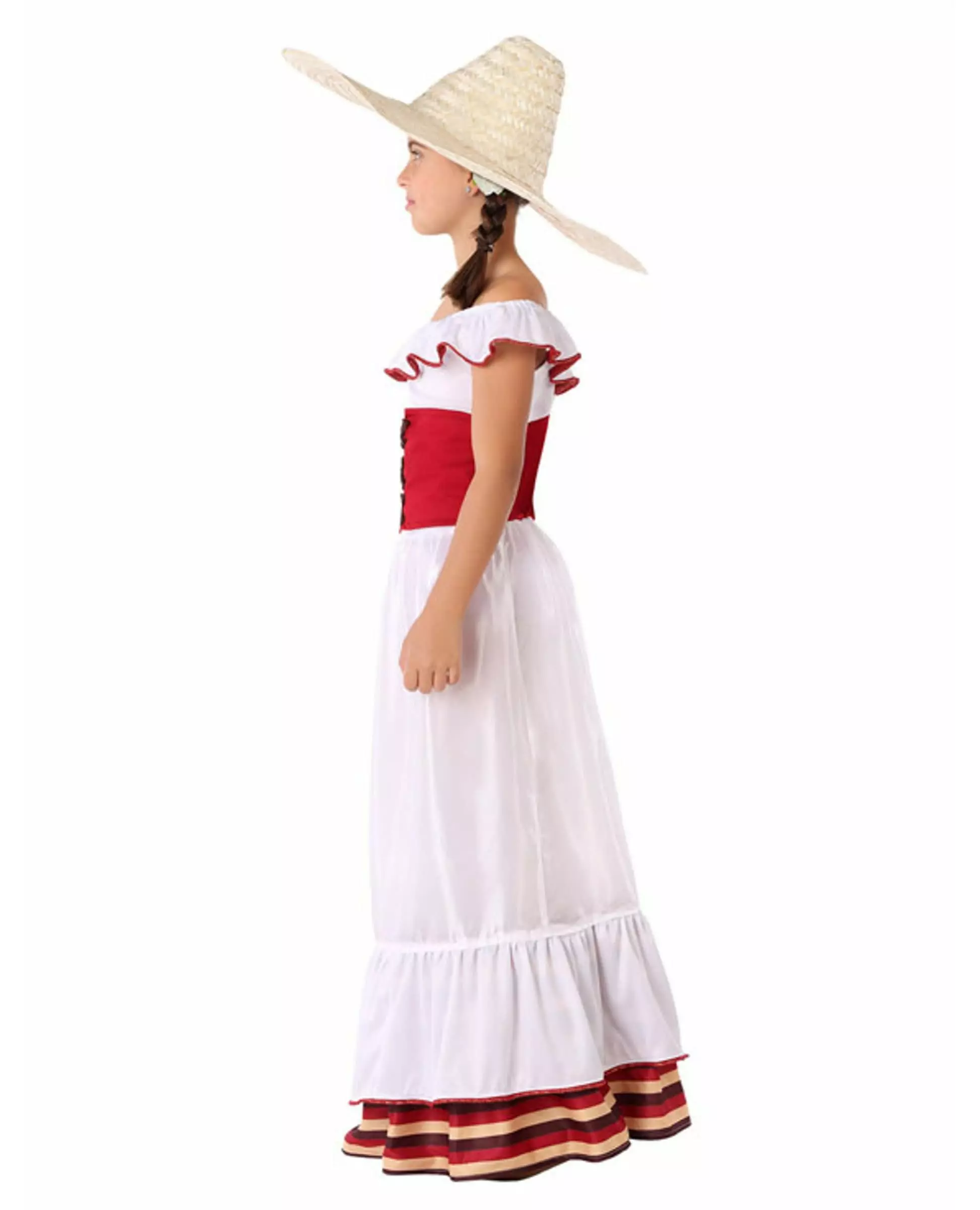 Mexico! Dette meksikanske kostymet for jenter består av en kjole som selges separat. Kjolen har båtermer på ermene og er hvit med røde sømmer på kragen. Kjolen har en falsk rød og brun overdel. Nederdelen av denne lange, utsvingte kjolen er også stripete i nyanser av rødt, beige og brunt. Dette meksikanske kostymet vil være ideelt for en verdensfest eller et karneval. Inkludert tilbehør: Kjole Materiale: Polyester Stell: Håndvask