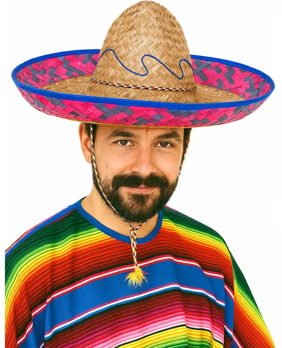 Meksikansk sombrero med rosa og blå kant for voksne