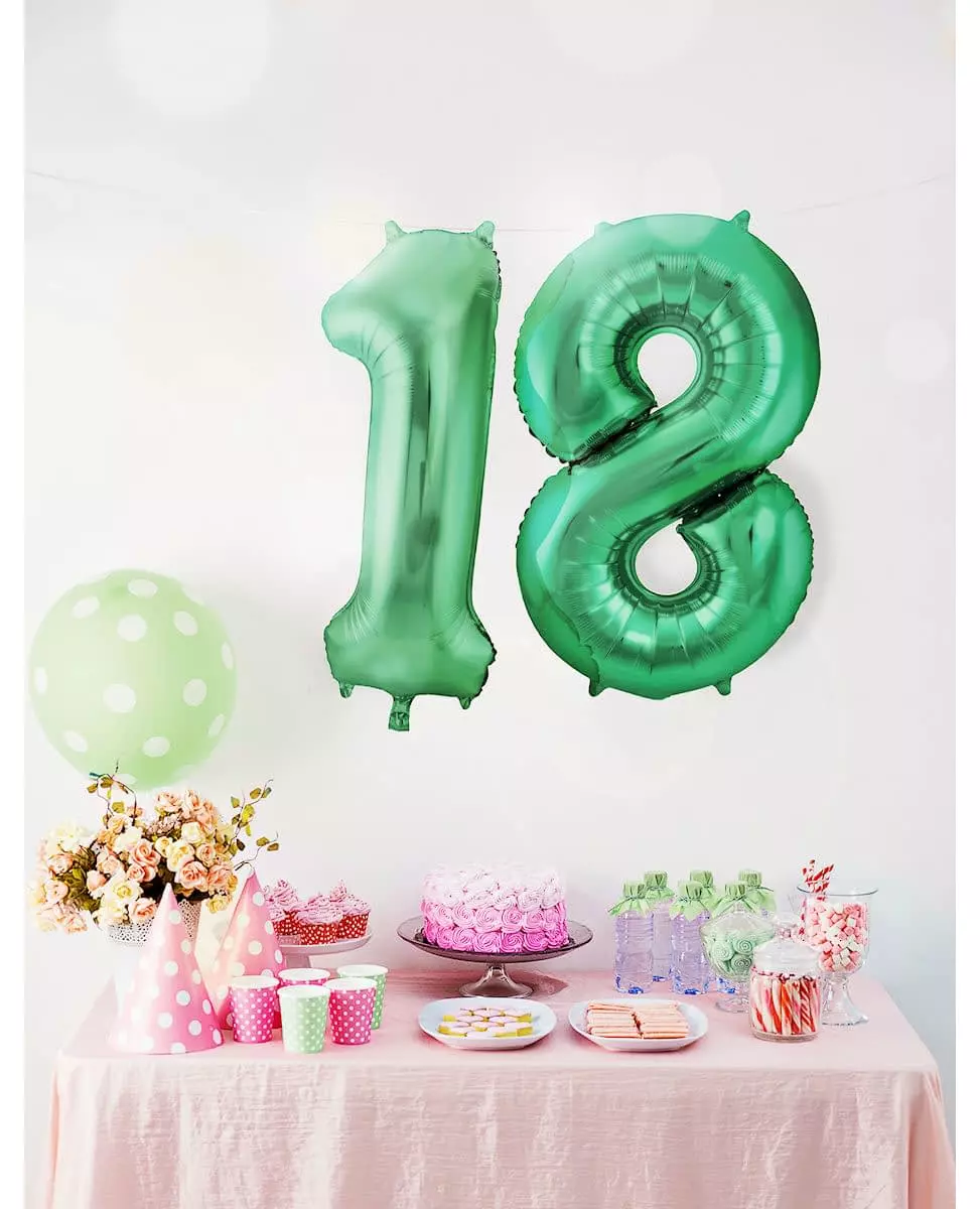 Angi alderen din med grønt! Denne folieballongen måler omtrent 86 cm når den er oppblåst. Du kan blåse den opp med luft ved hjelp av et sugerør, eller med helium for å få den til å fly. Du kan velge nummeret på ballongen i rullegardinmenyen (fra 0 til 9). Den er metallisk grønn i fargen. Denne ballongen vil være perfekt som en vakker dekorasjon på en bursdagsfest! Inkludert tilbehør: 1 ballong Materiale: Aluminium