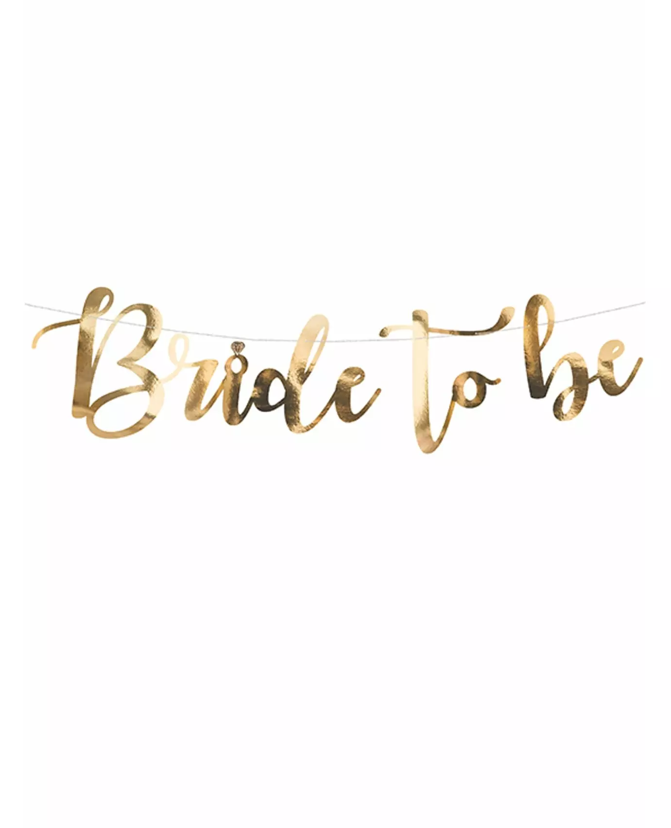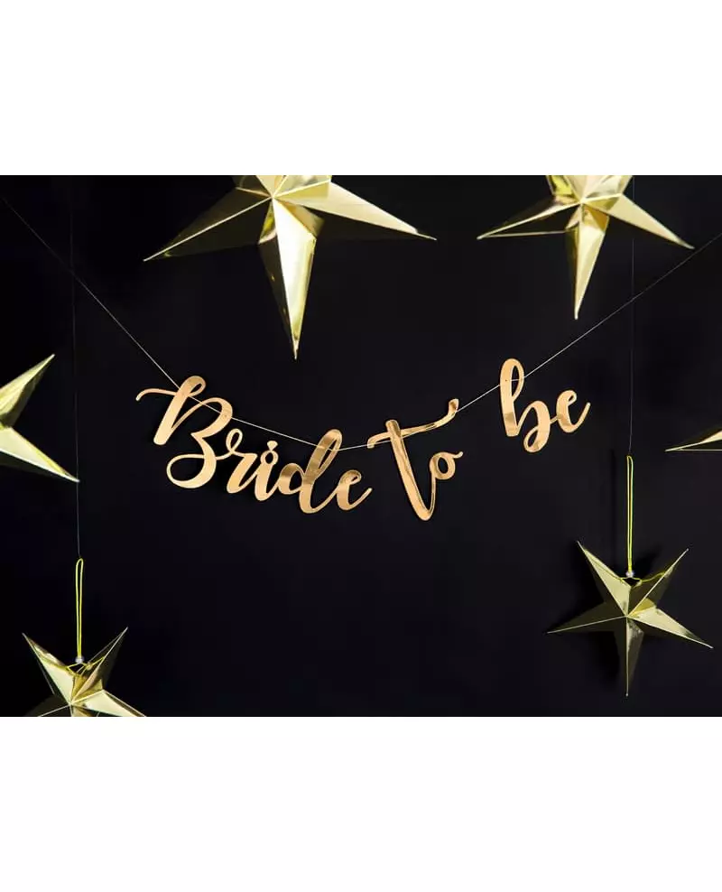 Din girlander for et strålende utdrikningslag! Denne girlanderen måler omtrent 80 x 19 cm. Den er laget av metallisk gullfarget papp og har inskripsjonen «bride to be». Den gullfargede snoren måler omtrent 150 cm i lengden. Denne girlanderen vil sette prikken over i-en på dekorasjonen din for et vanvittig utdrikningslag! Inkludert tilbehør: 1 brudbanner 1 snor Materiale: Papp