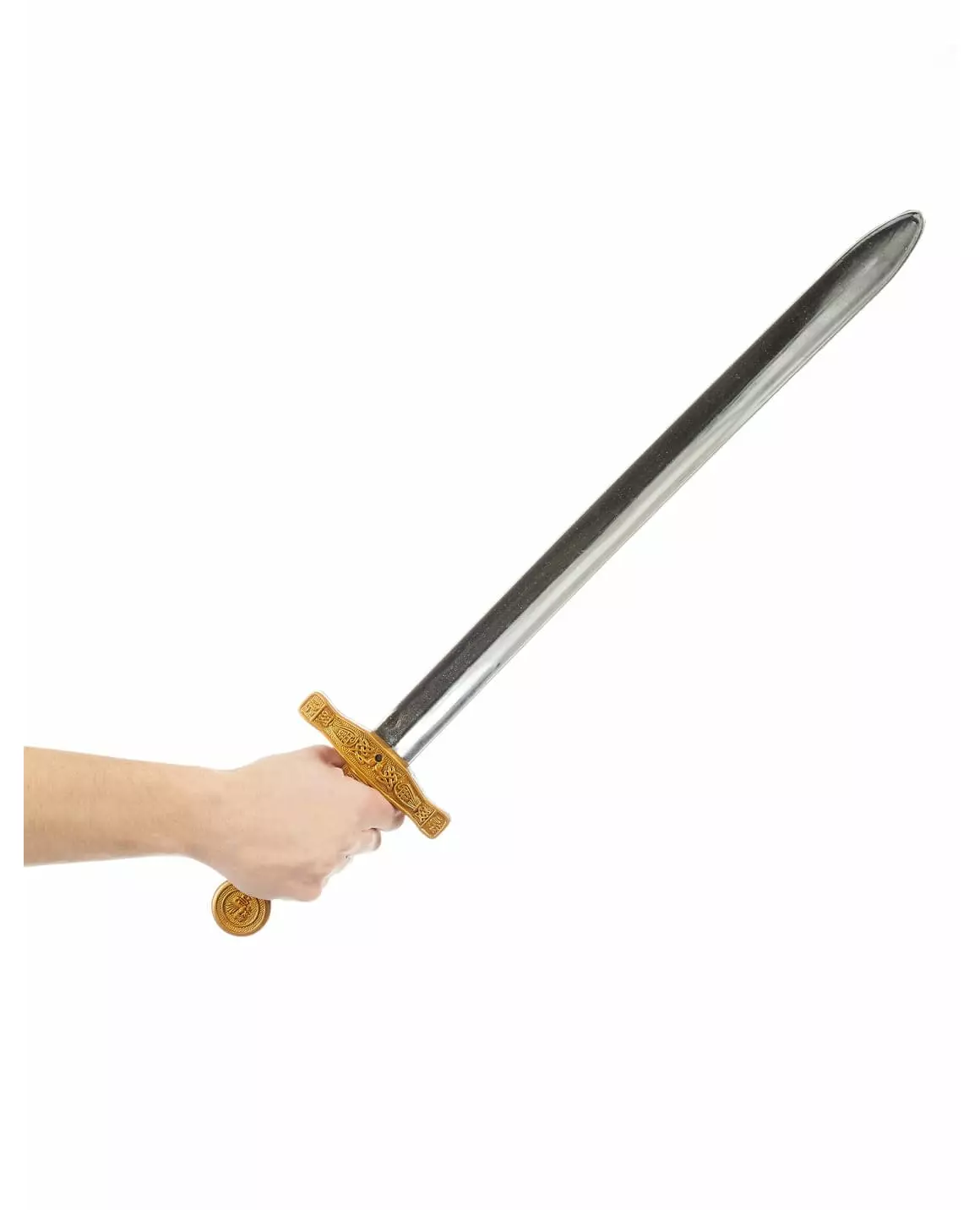 Bring middelalderen tilbake i rampelyset med dette riddersverdet. Dette riddersverdet i plast er det perfekte tilbehøret for å forestille en middelalderkriger eller en legendarisk konge. Med en lengde på 65 cm gir det et imponerende utseende, samtidig som det er lett og enkelt å håndtere. Det intrikate designet imiterer metall for et realistisk utseende, ideelt for dine episke kamper! Uten slire glir det lett inn i beltet eller vifter stolt for å forsvare kongeriket ditt. Plastdesignet sikrer sikker bruk, slik at du kan krysse sverd med edelhet og tapperhet. Enten det er for en middelalderkveld, et karneval eller et historisk show, er dette sverdet det essensielle tilbehøret for å perfeksjonere forkledningen din som ridder, konge eller romersk soldat. Forbered deg på å bli en del av legenden! Inkludert tilbehør: 1 sverd Materiale: Plast Stell: Håndvask