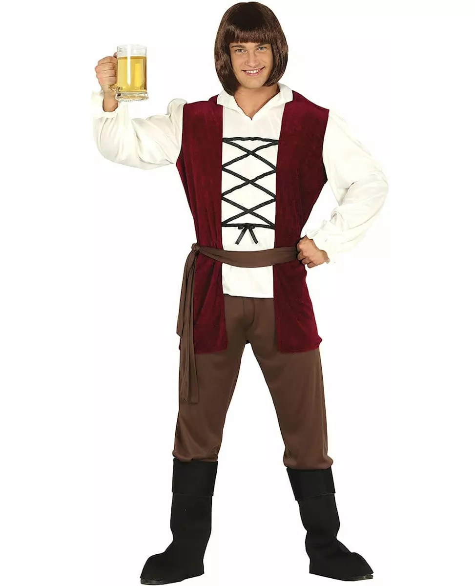 Roger, vertshusholderen! Dette vertshusholderkostymet for menn består av en tunika, bukser, et belte og støveltrekk (tanktopp og parykk er ikke inkludert). Den hvite tunikaen gir illusjonen av å ha på seg en rød fløyelsvest med falsk svart snøring. Buksene og beltet er brune. Støveltrekkene som følger med antrekket er svarte. Dette vertshusholderkostymet vil være ideelt for å delta på et middelalderarrangement eller på karneval. Inkludert tilbehør: Belte, bukser, tunika, støveltrekk. Materiale: 100 % polyester. Vedlikehold: Håndvask.