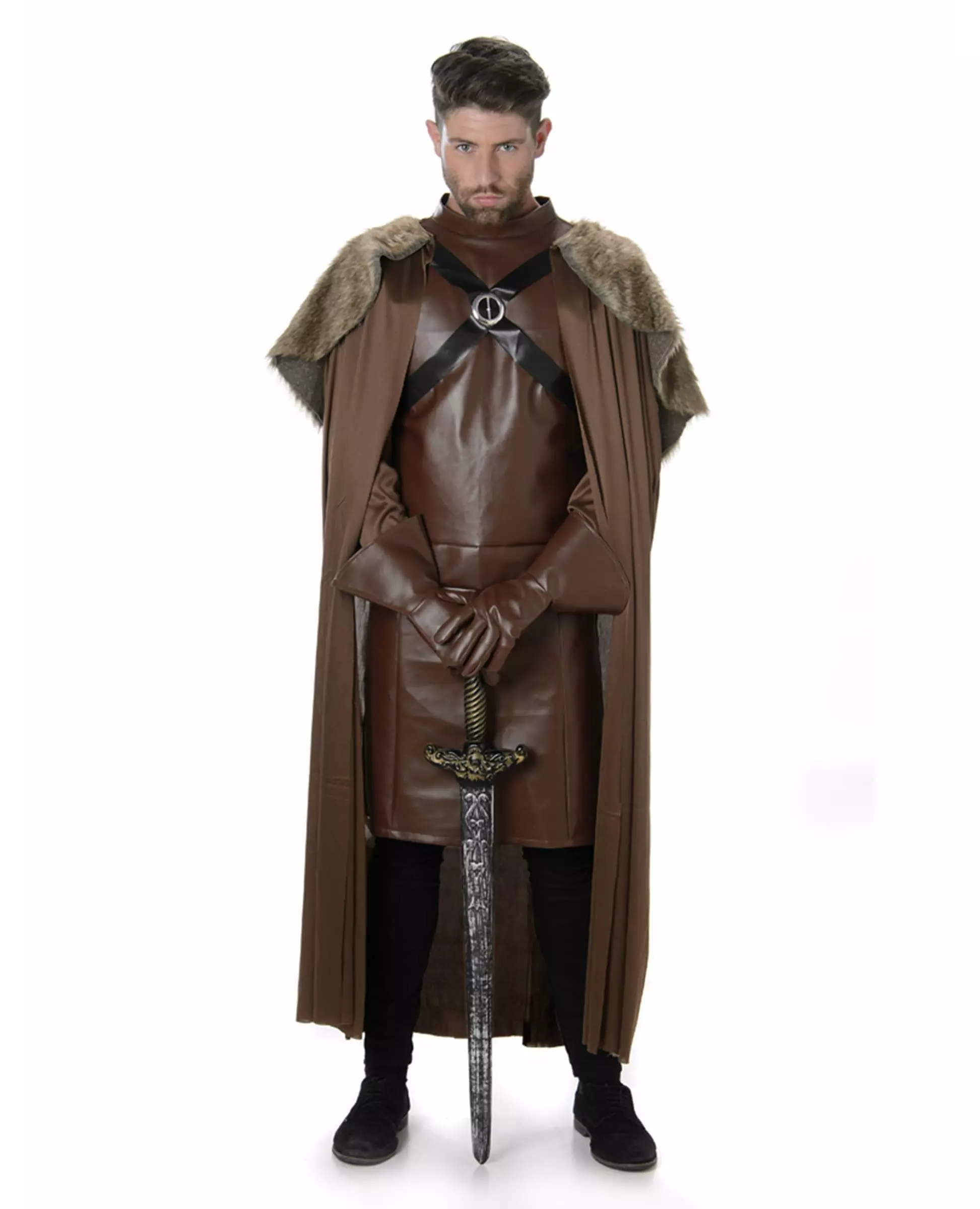 Gjenopplev middelalderen! Dette middelalderridderkostymet for menn består av en kappe, en tunika og et par hansker. Den lange kappen er laget av brunt stoff, med en liten fuskepelskappe over. Den er enkel å bruke med svarte bånd, lukket med borrelås. Tunikaen er laget av fuskeskinn kun på forsiden. Den er laget av et brunt stoff identisk med kappen på ermene og bak. Den lukkes bak med borrelås. Hanskene er laget av brunt fuskeskinn. Dette fantastiske middelalderridderkostymet er perfekt for å delta på en kveld med middelaldertemaet. Tilbehør inkludert: Kappe Tunika Hansker Materiale: 100 % polyester Stell: Håndvask Målinformasjon: For størrelse XL, tunika 116 cm lang og kappen ca. 140 cm lang