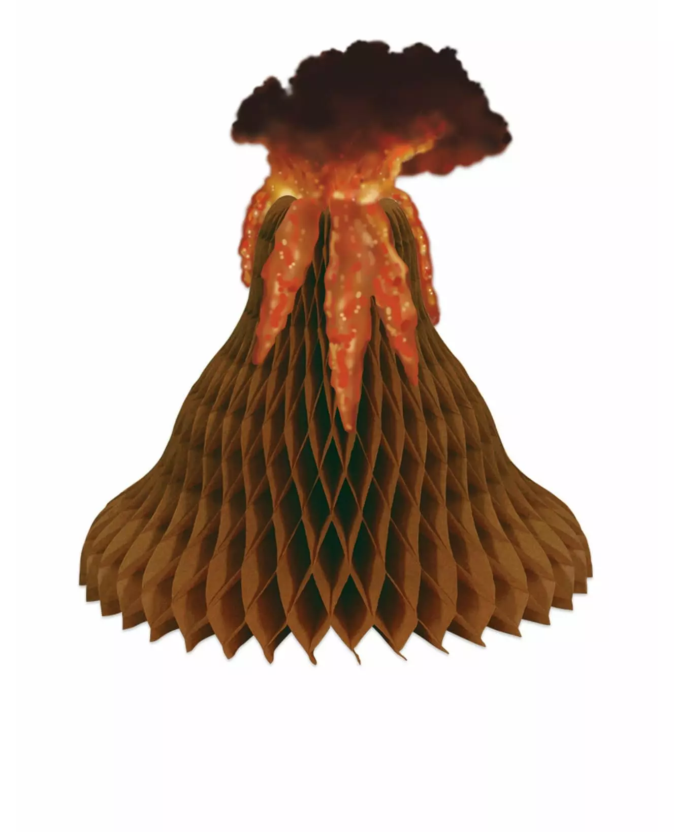 Middepunkt i papir med vulkansk honningkake-motiv, 38 cm. Sett fyr på bordet. Dette midtdekoret har en vulkan.