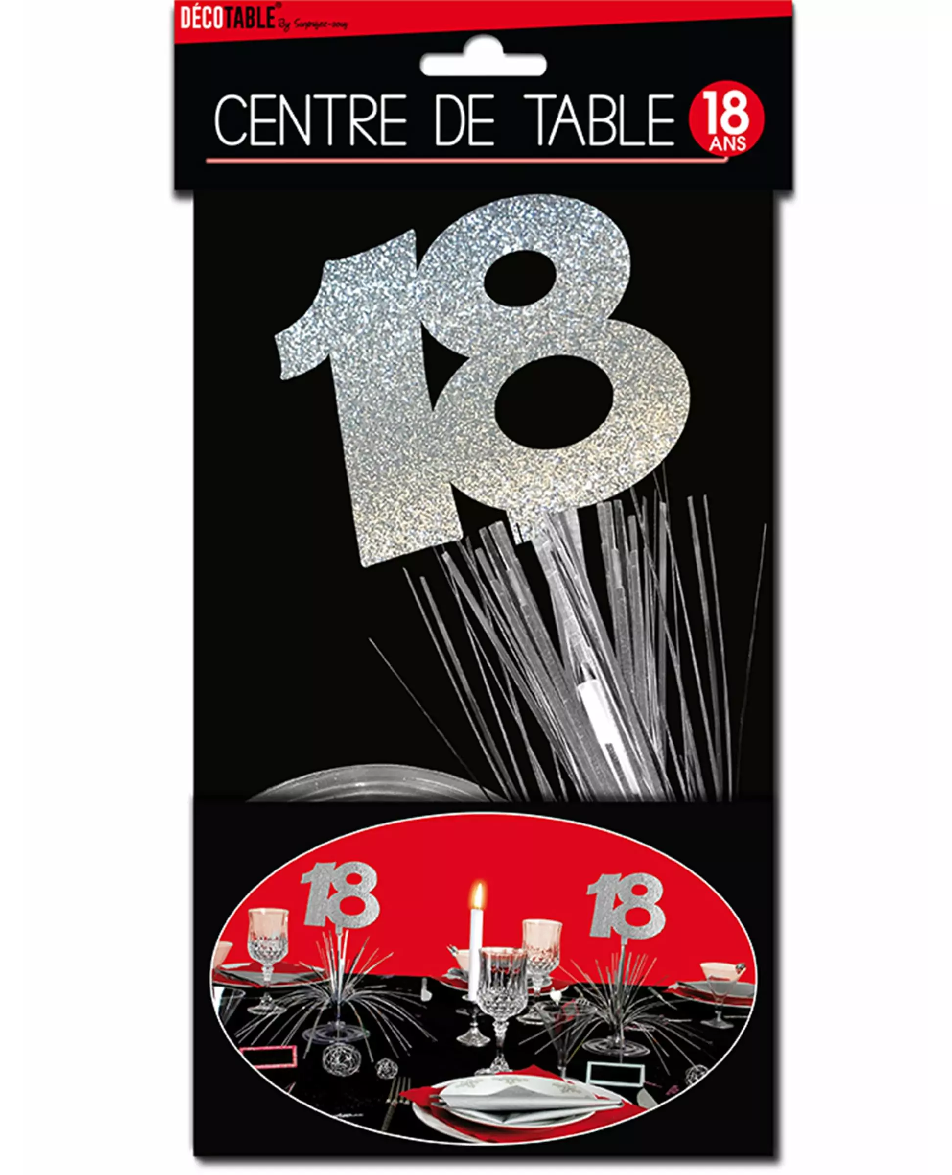 Feir din 18-årsdag! Dette midtstykket består av en plastbase hvor en kaskade av sølvtråder med tallet 18 er montert. Det måler omtrent 29 cm i høyden og 30 cm i diameter. Dette midtstykket vil være perfekt for å fullføre dekorasjonen din til en bursdagsfest. Inkludert tilbehør: Midtstykke