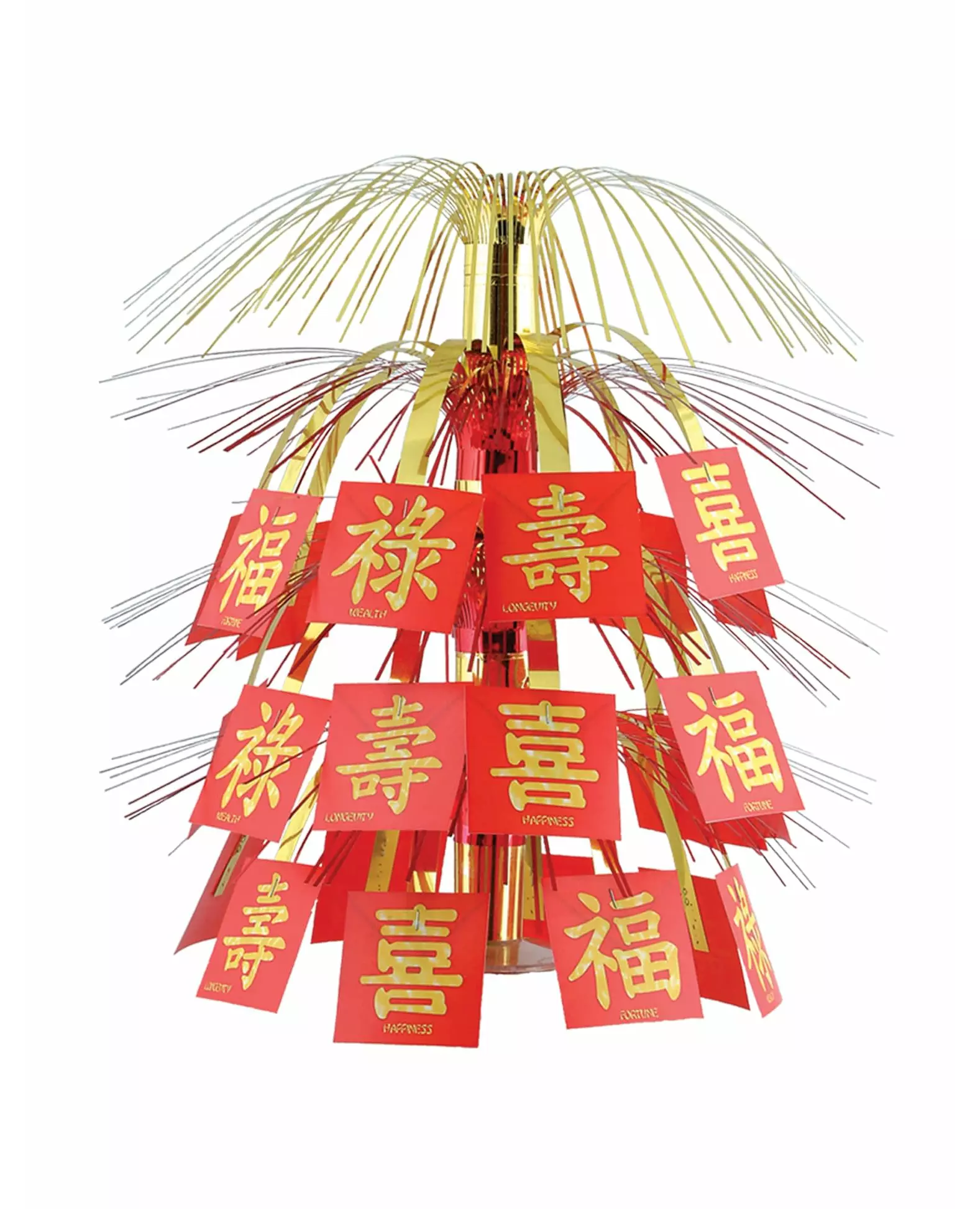 Lys opp bordet ditt til kinesisk nyttår! Dette kinesiske midtpunktet er i rødt og gullfarget, og måler 46 cm. På hvert av disse klistremerkene finner du en kinesisk skiltinnskrift samt ønsker om lykke. Dette tilbehøret vil være ideelt for å dekorere bordet ditt under kinesisk nyttår eller til en asiatisk-inspirert kveld. Inkludert tilbehør: 1 midtpunkt Materiale: Plast