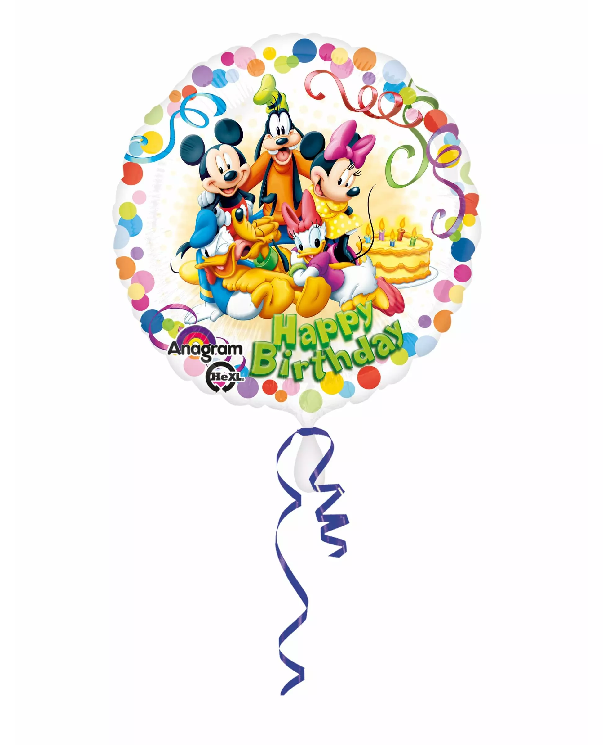 Fest med Mikke Mus™ og vennene hans! Denne bursdagsballongen er offisielt lisensiert av Disney™ og måler nesten 43 cm i diameter. Den er hvit med flerfargede ballonger som går rundt ballongen, og i midten kan du se Mikke Mus™ og alle vennene hans, Langbein™, Donald™, Pluto™, Minnie™ og Daisy™ som alle ønsker deg gratulerer med dagen! Denne ballongen kan blåses opp med luft eller helium og vil være den perfekte gaven til en ung fan av Disney™-universet! Inkludert tilbehør: 1 ballong Materiale: Aluminium